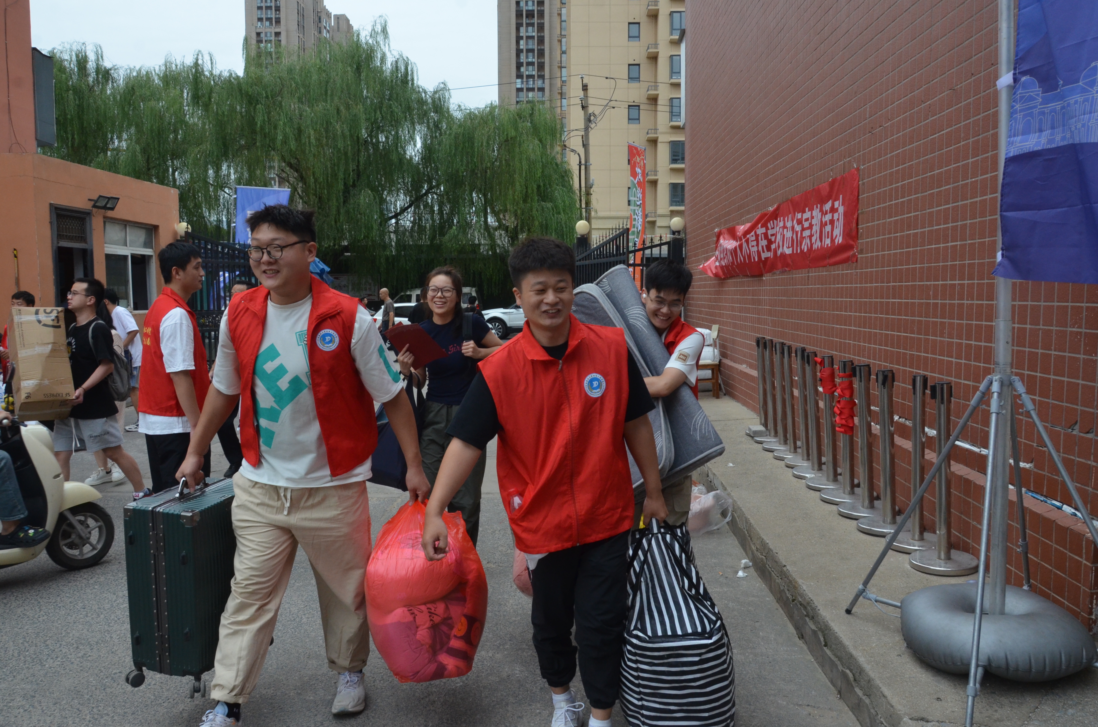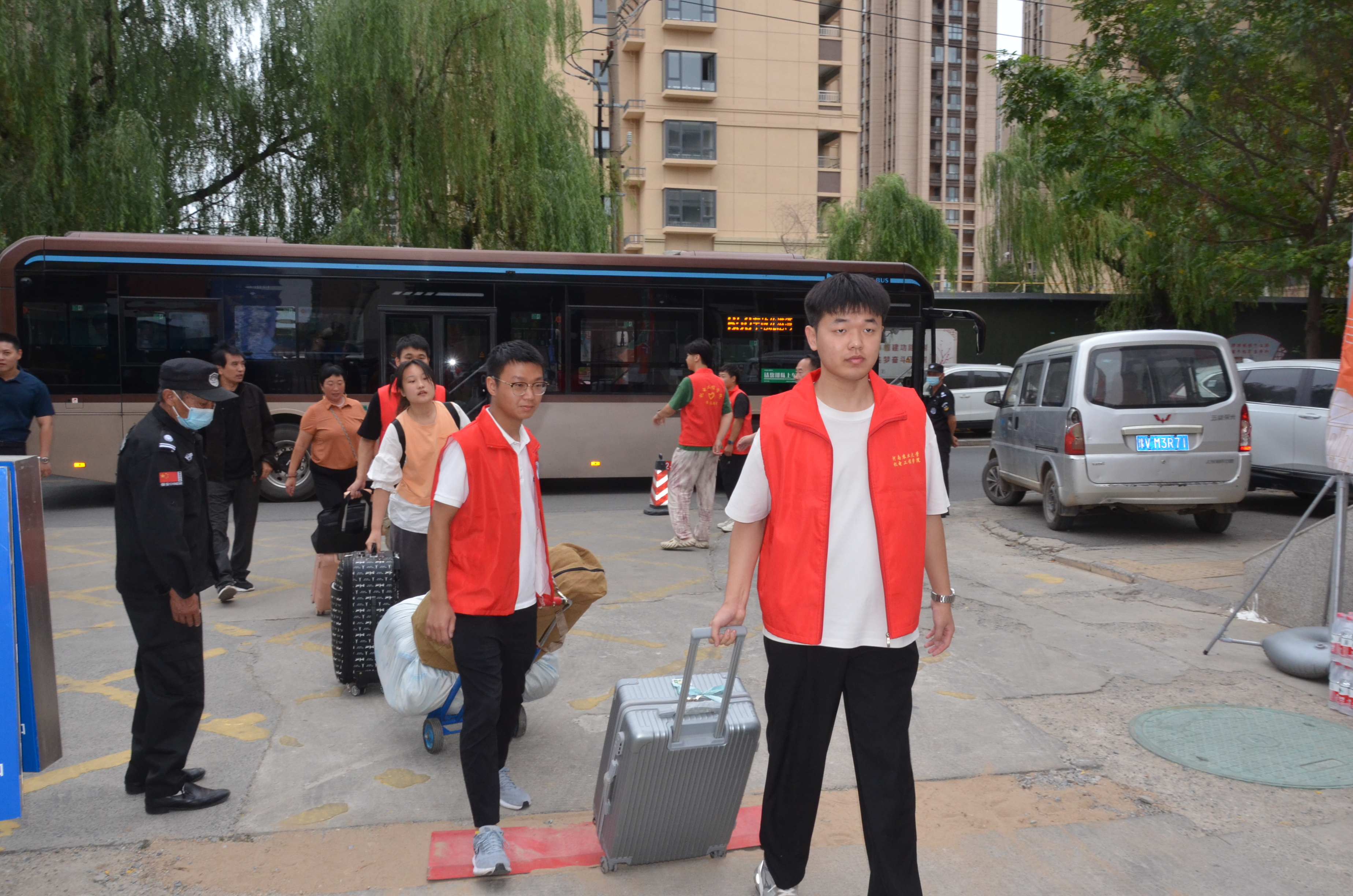志愿者们身穿红马甲,成为校园里的温暖使者,他们分工协作、秩序井然,有序引导新生报到、指引道路交通、协助搬运行李等,始终以最佳的状态,为新生们提供志愿服务帮助。