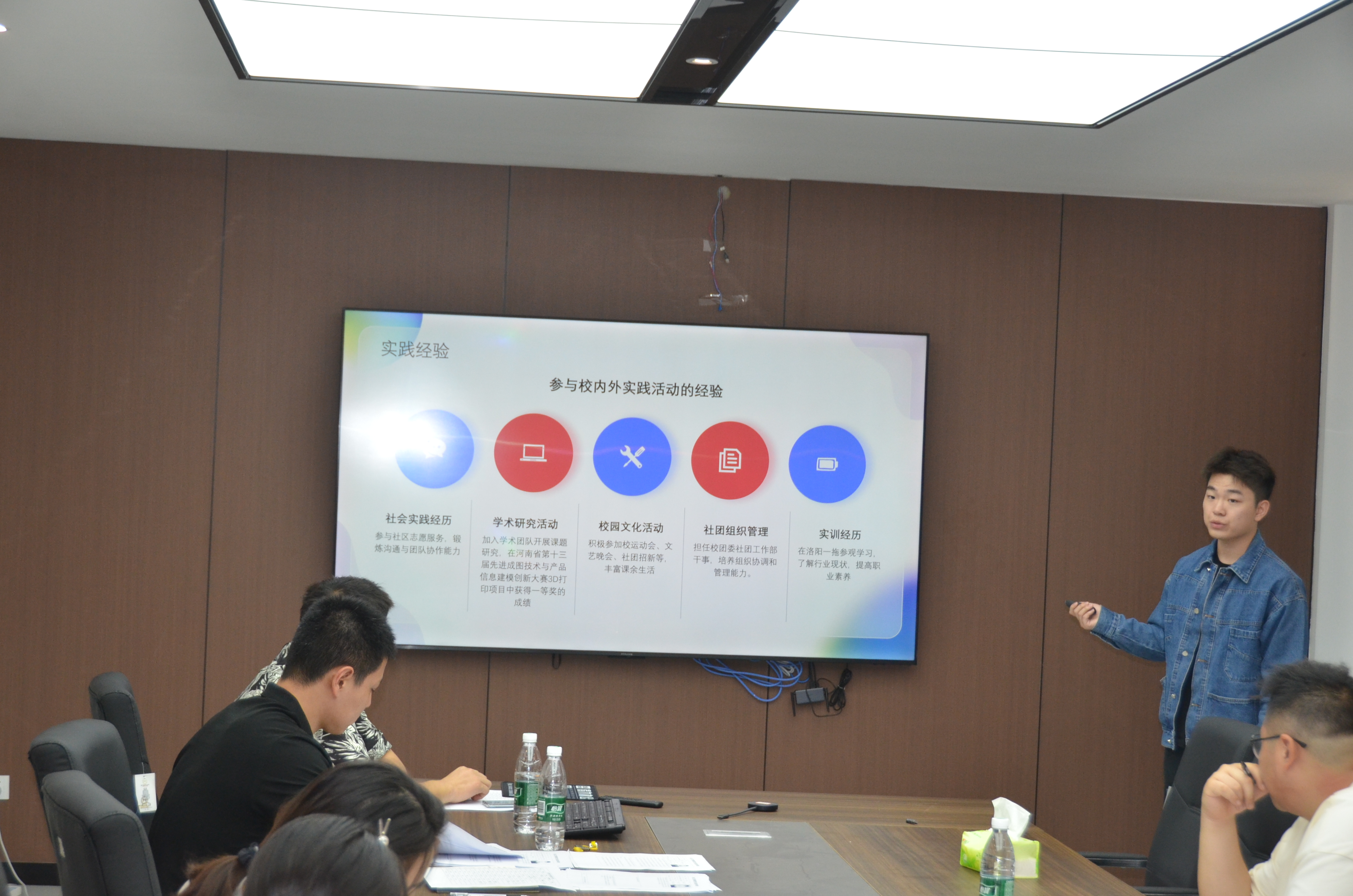 面试过程分为两个环节。第一个环节是自我介绍,参加面试的学生对自己的具体信息、工作经历、个人优势等方面进行介绍,并陈述竞选理由。第二个环节是接受评委的提问,回答有关未来工作规划的问题,并提出个人的见解。面试结束后,评审小组根据参加面试者的表现进行讨论并决定是否录用。