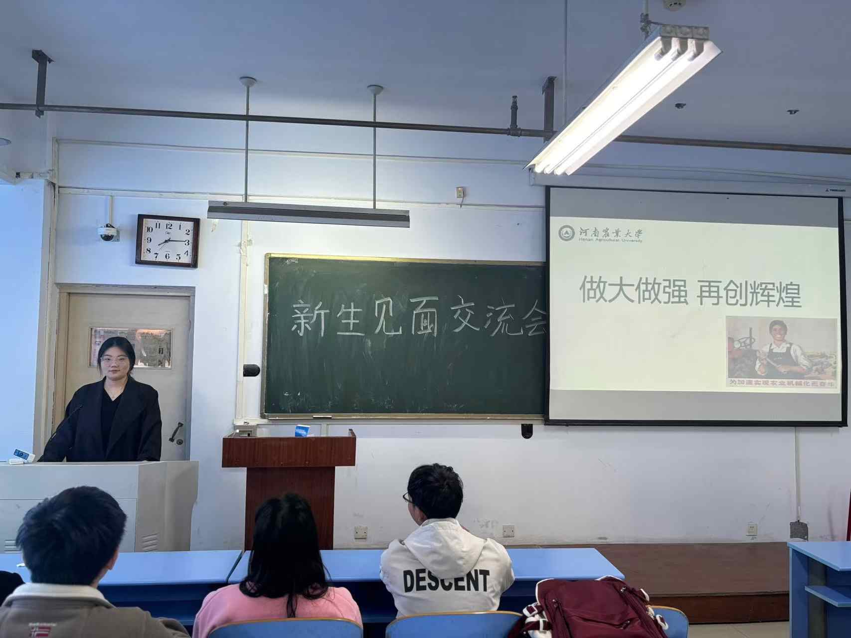 会议伊始,李锦介绍了学院的整体情况,并就研究生日常管理制度、培养方案、奖助学金评定制度进行解读,让新生们对研究生学习生活有了更加详细的了解,同时,他强调研究生要重视社会实践,做好职业生涯规划。