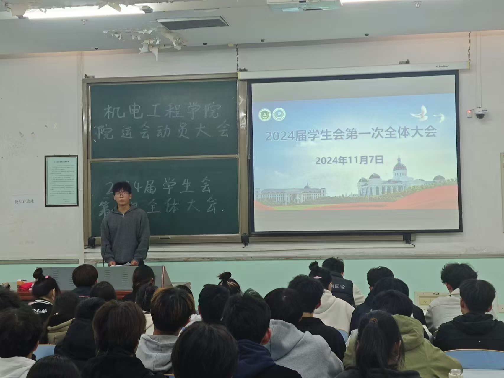 于文化路校区工程楼206教室召开2024届学生会第一次全体大会。兼职辅导员李梦想、校学生会主席张轩硕 以及全体学生会成员参加此次会议,会议由91猫先生