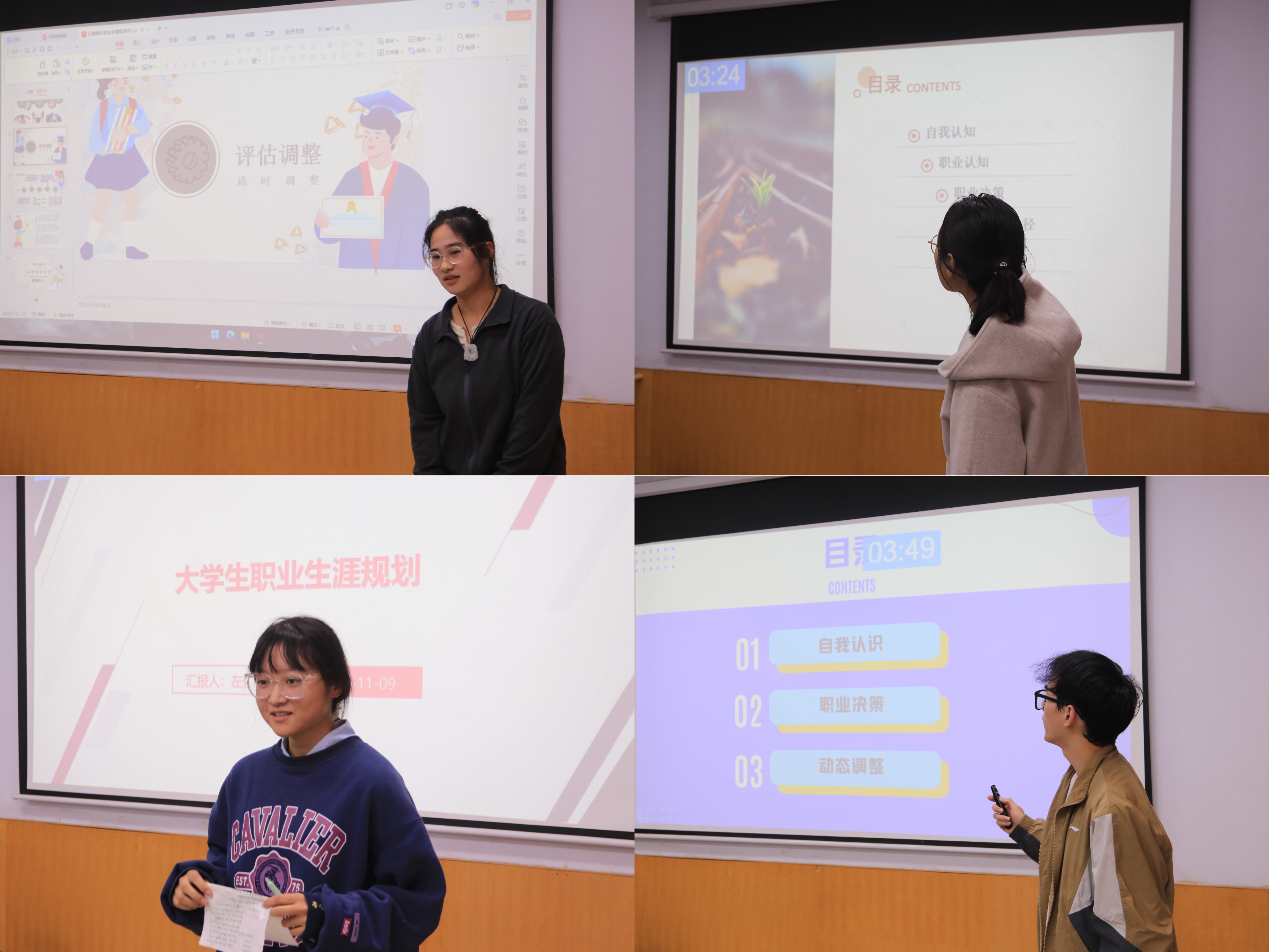 在比赛中,选手们凭借精心制作的PPT和生动的演讲,围绕自身的专业特点和兴趣爱好,全面而深入地阐述了自己的职业目标、发展路径及实施计划。他们不仅从多个角度进行了深度剖析,还分享了自己的成长经历和心路历程,结合心仪职业的特点,分析了职业发展的前景和挑战,并提出了切实可行的职业规划和实施方案。