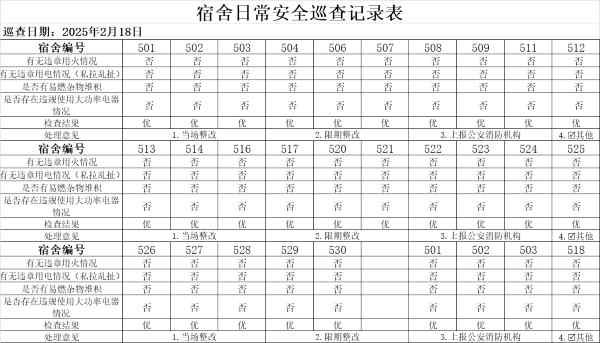 2月18日研究生宿舍卫生安全检查情况公示