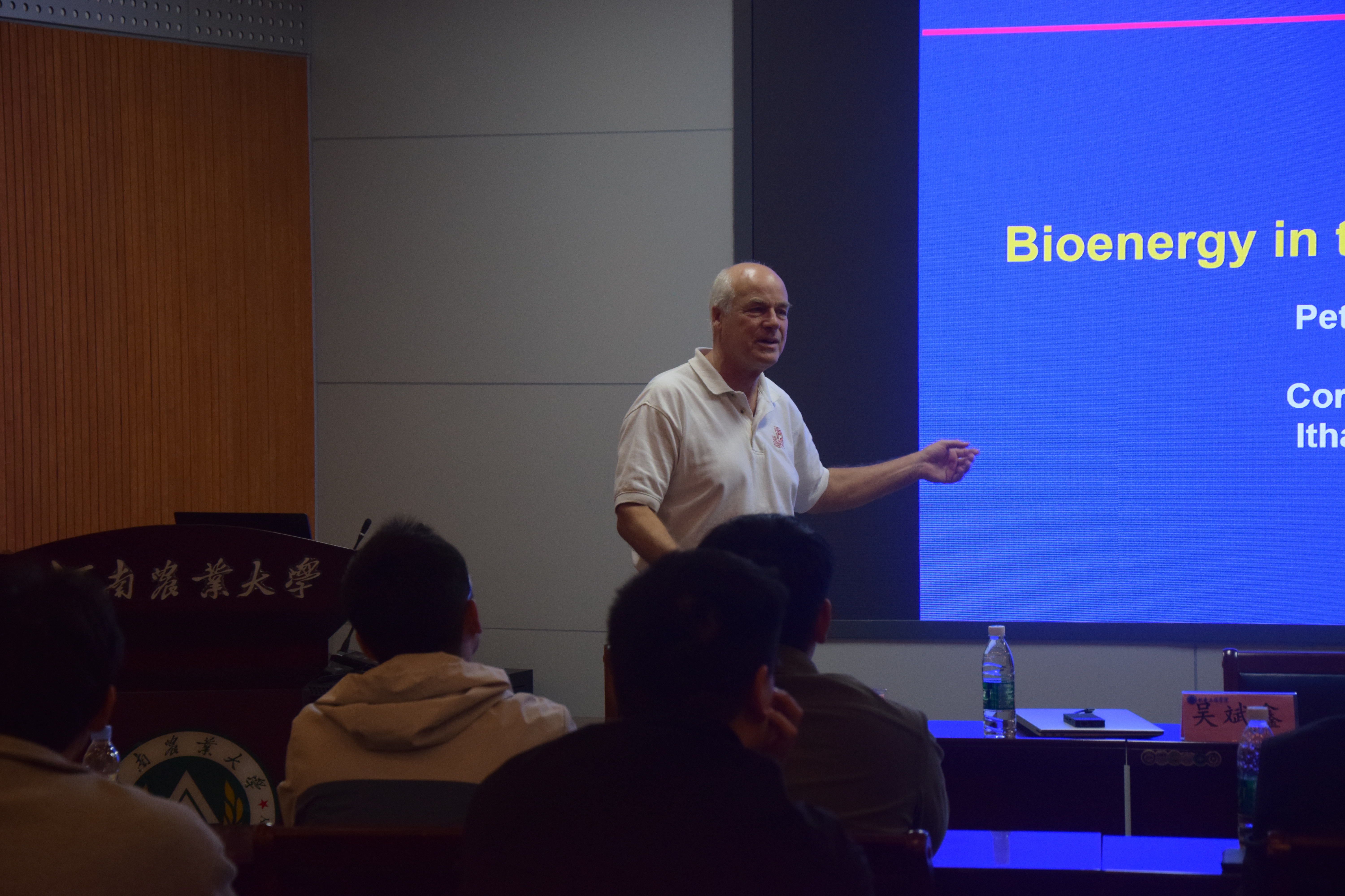 Peter Wright教授以PPT的形式向大家展示了主题为“Bioenergy in the U.S.”的报告,他向我们展示了美国现阶段在农场经营管理领域中“沼气储存与利用”、“厌氧发酵”、“农牧业废弃物处理和管理”等生物能源应用研究方面的优秀成果,介绍了生物能源的未来发展趋势和应用前景,并就生物能源开发和应用研究方面开展国际研究合作提出建议。