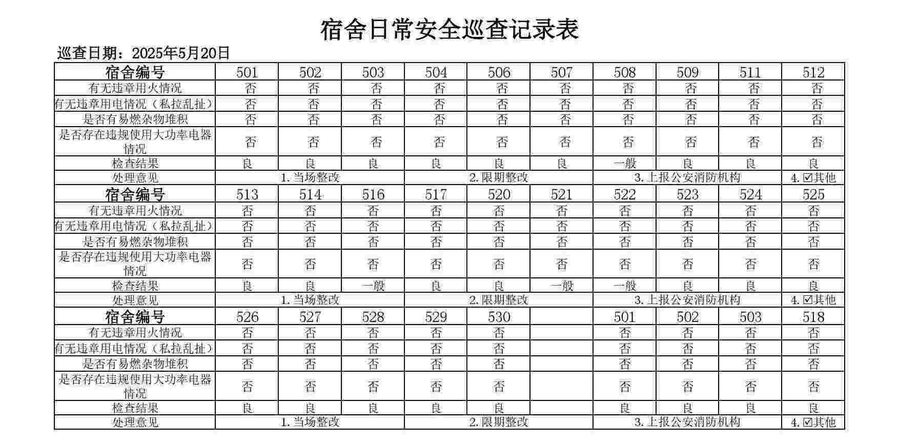 5月20日研究生宿舍卫生安全检查情况公示