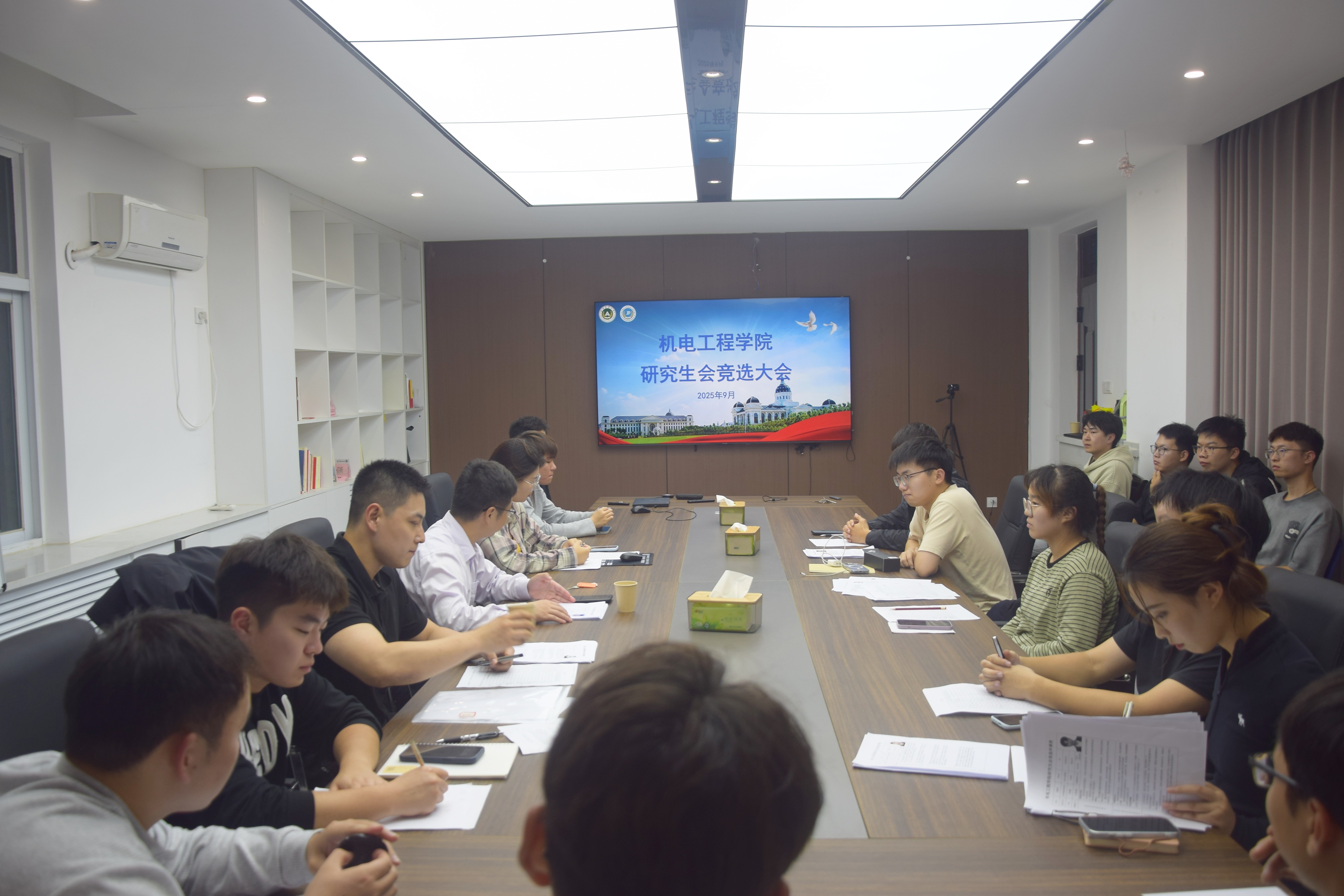 为进一步优化研究生干部队伍结构,加强组织建设,持续提升服务同学的效能,9月24日,学院在文化路校区15号楼多功能会议室举办院研会换届竞选工作。本次竞选会由研究生辅导员李锦主持,院党委副书记宋晶、2024届院研会各部门成员和新一届院研会候选人共同参与。经过宣传动员、现场面试等环节推进,本次换届竞选工作顺利完成,为院研会注入充满活力的新鲜力量。