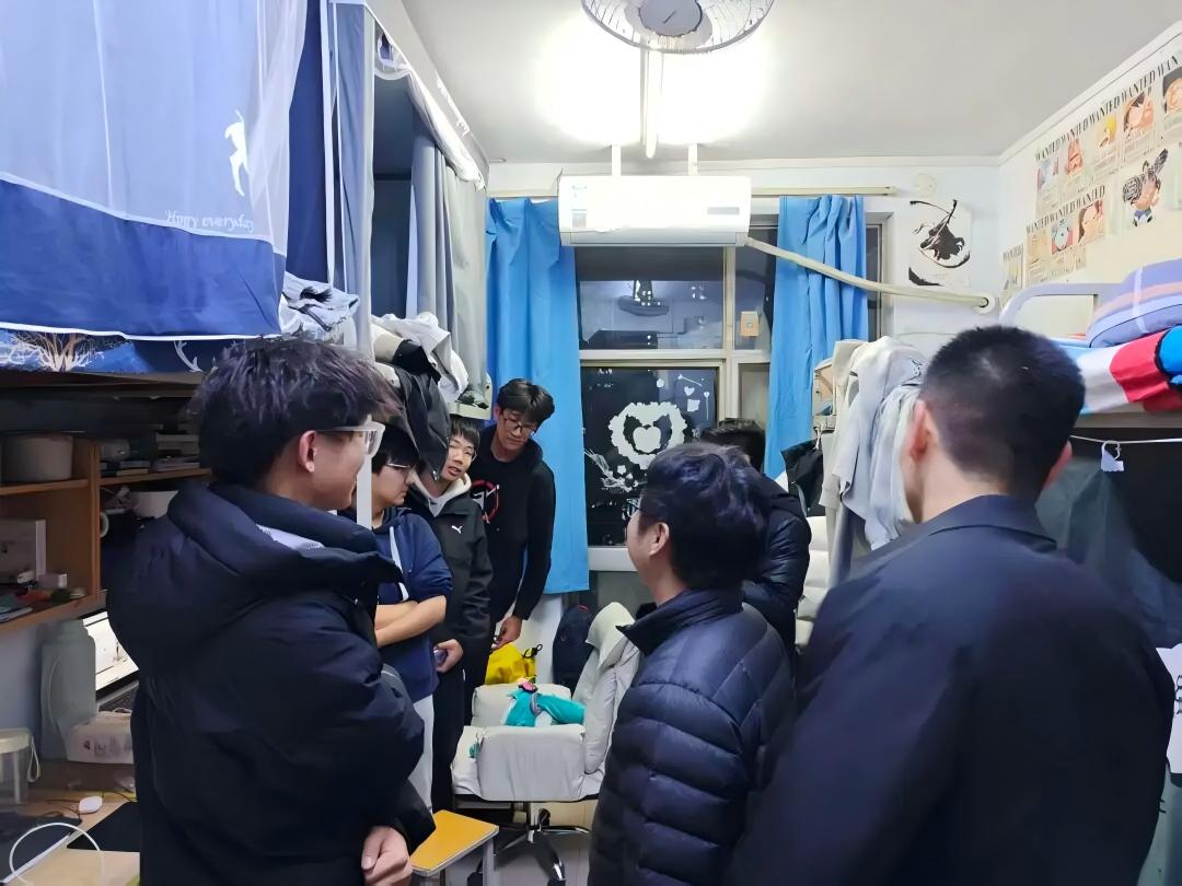 走访过程中,老师们着重向同学们强调:安全是宿舍集体生活的重中之重,容不得丝毫松懈!违规电器、液体/固体燃料及灌装丁烷气类器具潜藏极大火灾风险,一旦引发事故将危及生命财产安全,必须坚决杜绝存放,时刻坚守安全底线。同时,老师们提醒大家,期末备考阶段需保障充足休息,建议早睡早起,休息时段保持宿舍安静,切勿大声喧哗影响他人,以良好作息和和谐氛围助力高效备考。
