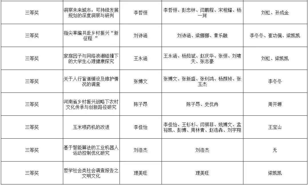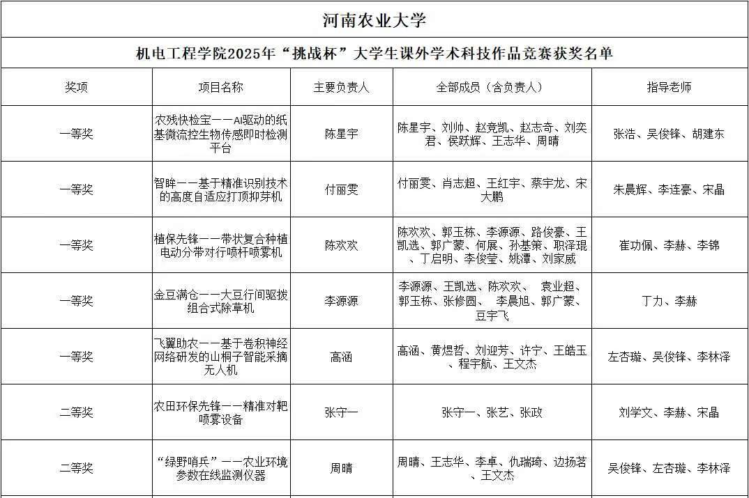 为贯彻落实党的二十大精神,立足新发展阶段、贯彻新发展理念、构建新发展格局、服务高质量发展,同时营造良好的校园创新氛围,展示91猫先生 学子风采。91猫先生 广泛动员广大师生参加91猫先生 2025年“挑战杯”大学生课外学术科技作品竞赛,最终评选出一等奖5名,二等奖8名,三等奖11名。现将获奖名单公示如下: