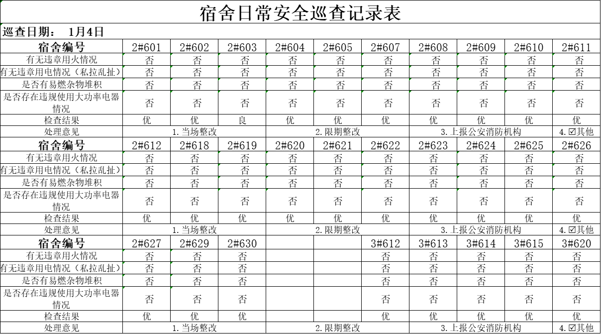 1月4日研究生宿舍卫生安全检查情况公示