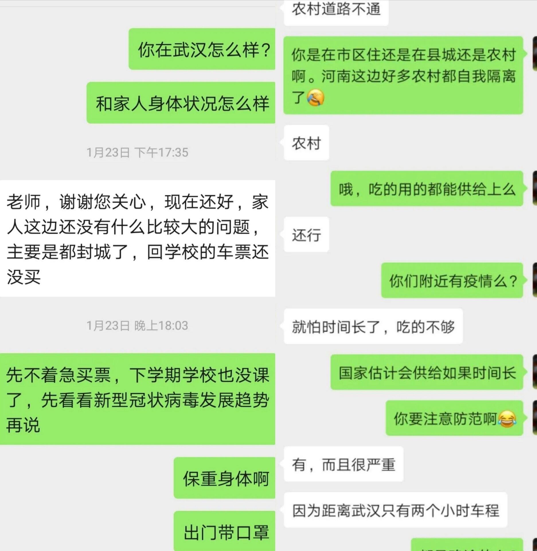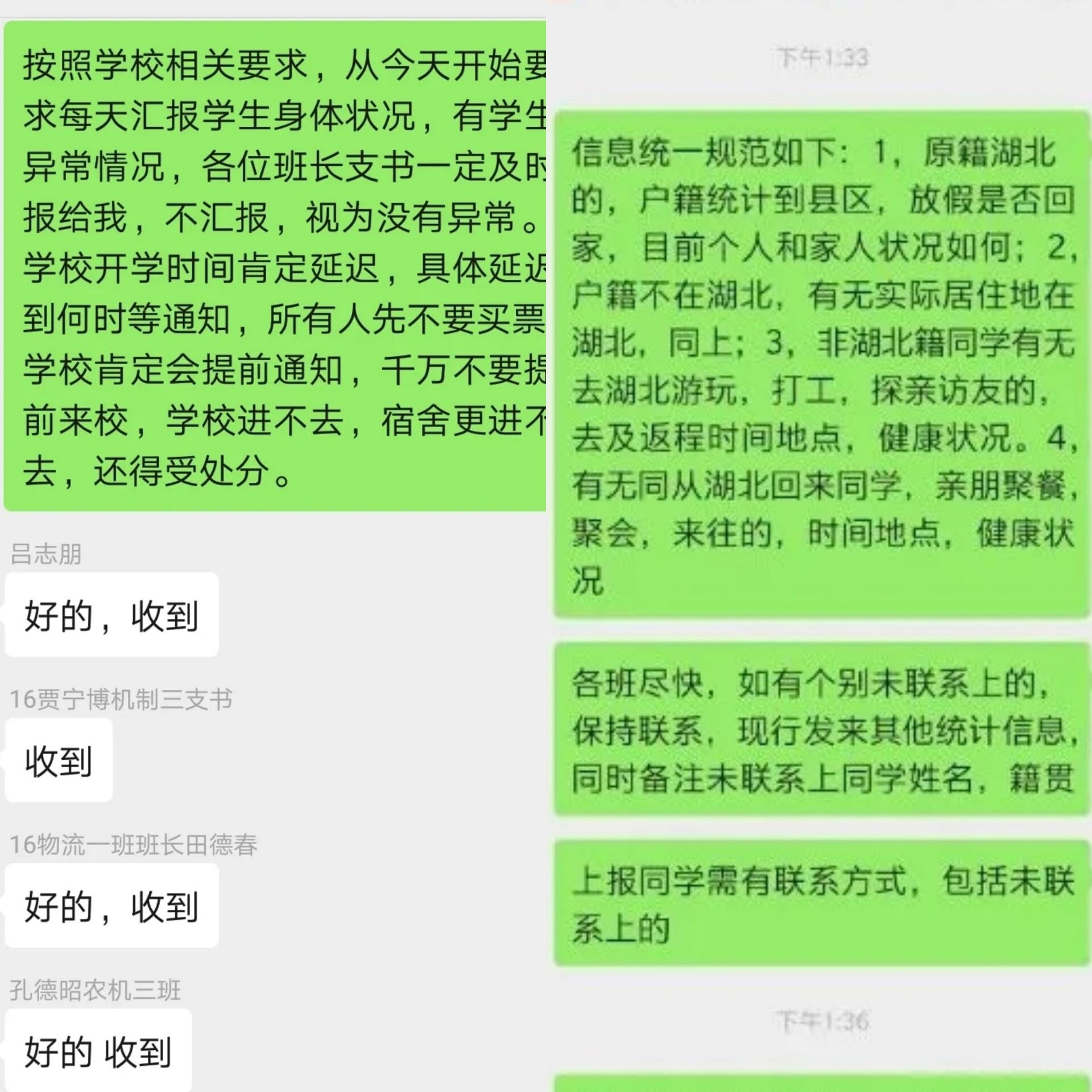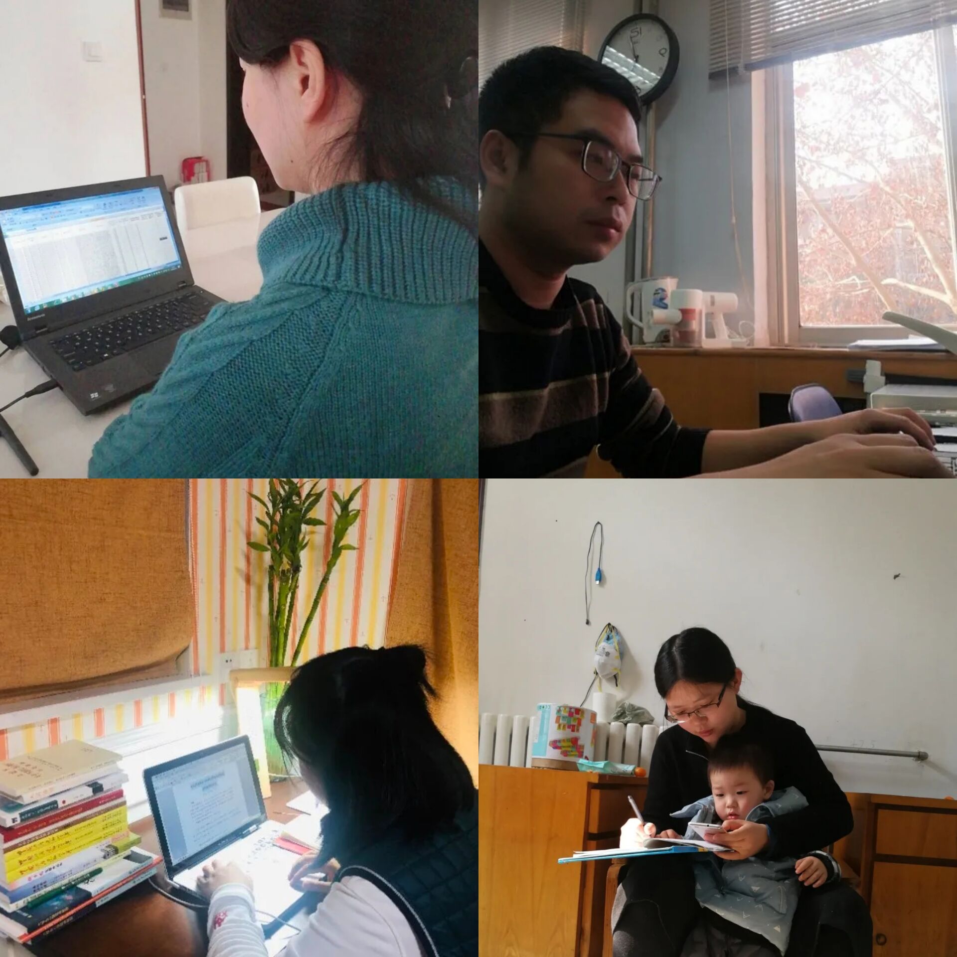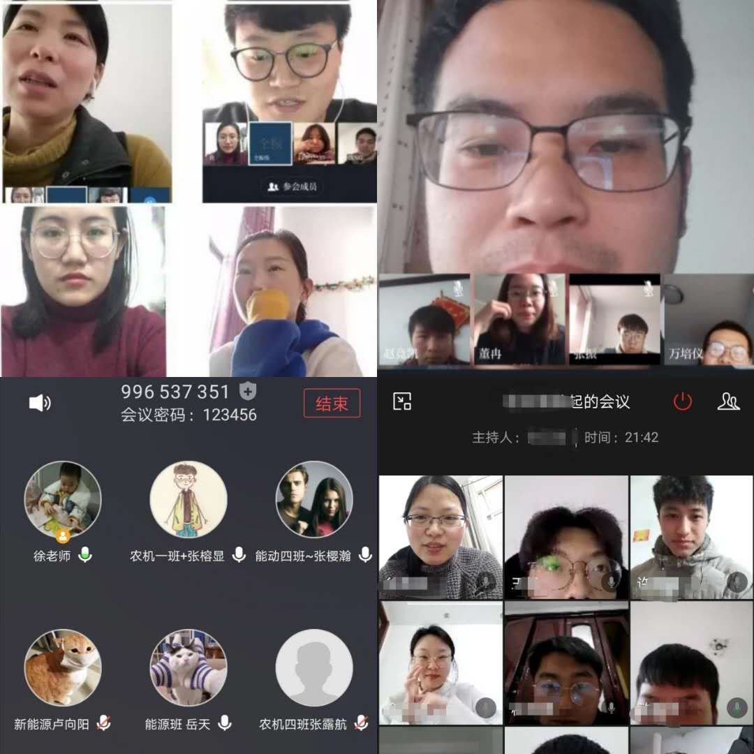 (左:辅导员了解湖北籍学生情况 右:召开视频工作会议)