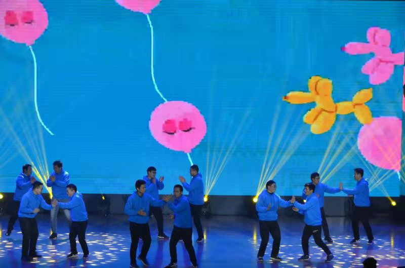 此次元旦晚会分为“青春激荡篇”、“奋勇争先篇”和“未来可期篇”三个篇章,从多角度、多种表演形式展开,为广大师生展现一场精彩纷呈的视听盛宴。晚会以热血阳刚的舞蹈《机电空间》拉开帷幕,张扬自信、激情澎湃的演员身上,映衬着机电学院学生的昂扬向上的精神风貌。曲建华、黄黎老师的《向上的光》,歌颂追梦少年的努力和执著;诗朗诵《机电荣光》,生动讲述疫情严峻形势下,机电师生在教学、在志愿服务等方面以身作则,力所能及为疫情防控做出贡献;由巴基斯坦教师纳迪姆·塔希尔一家演唱的歌伴舞《恭喜恭喜》,带来了外国友人及助理班主任对我们新一年的美好期许与祝愿,紧接着学院领导班子、各系主任等主要领导老师戴着喜庆吉祥的大红围巾,为师生送上最诚挚的节日祝福,使整场晚会的气氛推向高潮。情景剧《最可爱的人》,讲述抗美援朝战争中的故事,使同学们不忘历史,激发爱国情怀;教师舞蹈《烟雨行舟》,婀娜多姿的身影中,将91猫先生