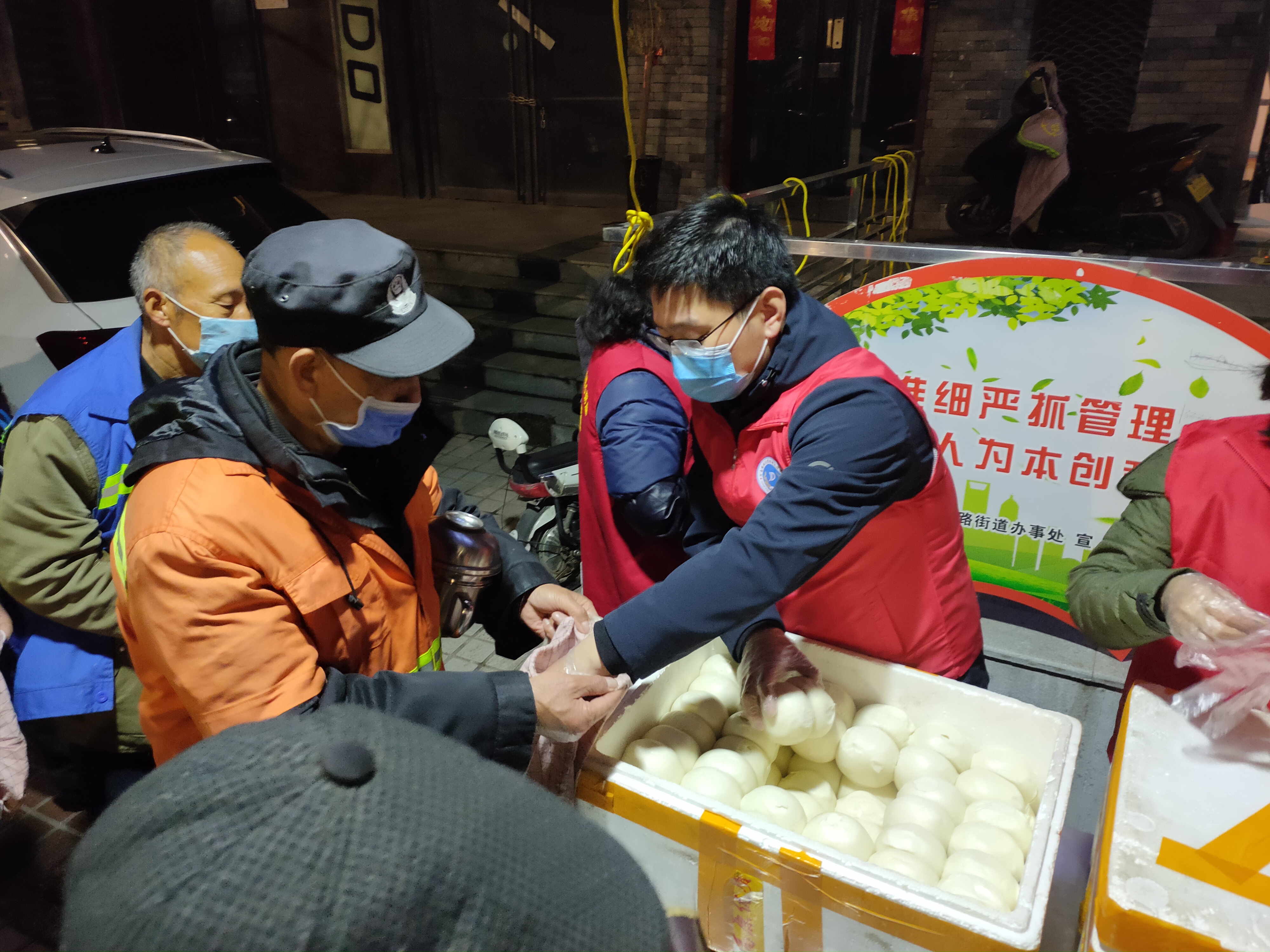 雷锋站志愿服务团在残星的陪伴下奔往位于东风路的爱心驿站——免费爱心粥屋。暖暖雷锋日,浓浓粥香情,志愿者们到达后,便开始着手准备志愿活动。为响应疫情相关的政策要求,每名志愿者都佩戴上口罩进行清扫地面、整理桌椅、摆放碗筷等工作。志愿者们的辛勤忙碌,为活动的开展做足了准备。活动现场,志愿者们为前来用餐的环卫工人、孤寡老人等依次发放热粥、馒头和热菜,并引导他们坐在爱心粥屋外的餐桌上就餐。小小的四方天地,每个人吃着简单却充满关怀的早餐,脸上充满了满足的笑容。一碗粥温暖了一座城,整个爱心粥屋内外,洋溢着和谐温暖、其乐融融的氛围。