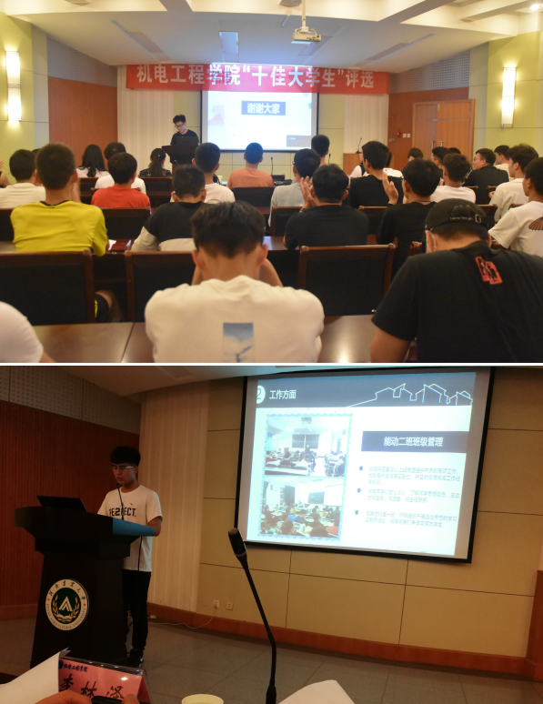 2019年度“十佳大学生”候选人。比赛分为PPT演讲和随机抽取题签并作答两个环节,候选人根据自己抽到的序号依次上台进行演讲。他们结合自己的成长经历,分享生活磨砺中的励志进取,笃行志愿服务的榜样引领,述说创新创业中的拼搏逆袭,他们用自己的励志、奋斗、拼搏向评委们和现场观众讲述一个又一个催人奋进的故事。评选现场震撼心灵,掌声雷动,充分凸显当代大学生务实奋进的精神。题目抽取环节,题目涉及到创新创业、一带一路、中美贸易关系等时政问题及关于对学习、工作认识方面的问题,参赛者们沉着镇静,依据所选题目联系实际认真作答。