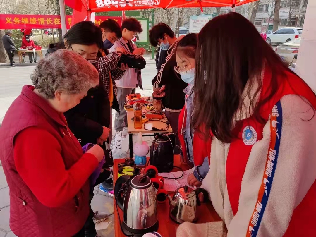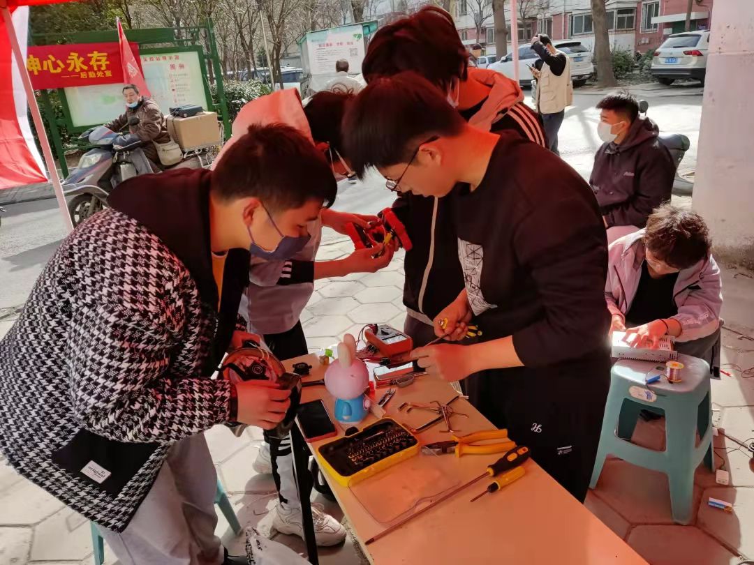 组织雷锋站志愿者协会、无线电协会成员于文化路校区家属院组织开展义务家电维修活动。院团委书记黄笑,辅导员王晓楠、徐佳亮来到现场指导活动。