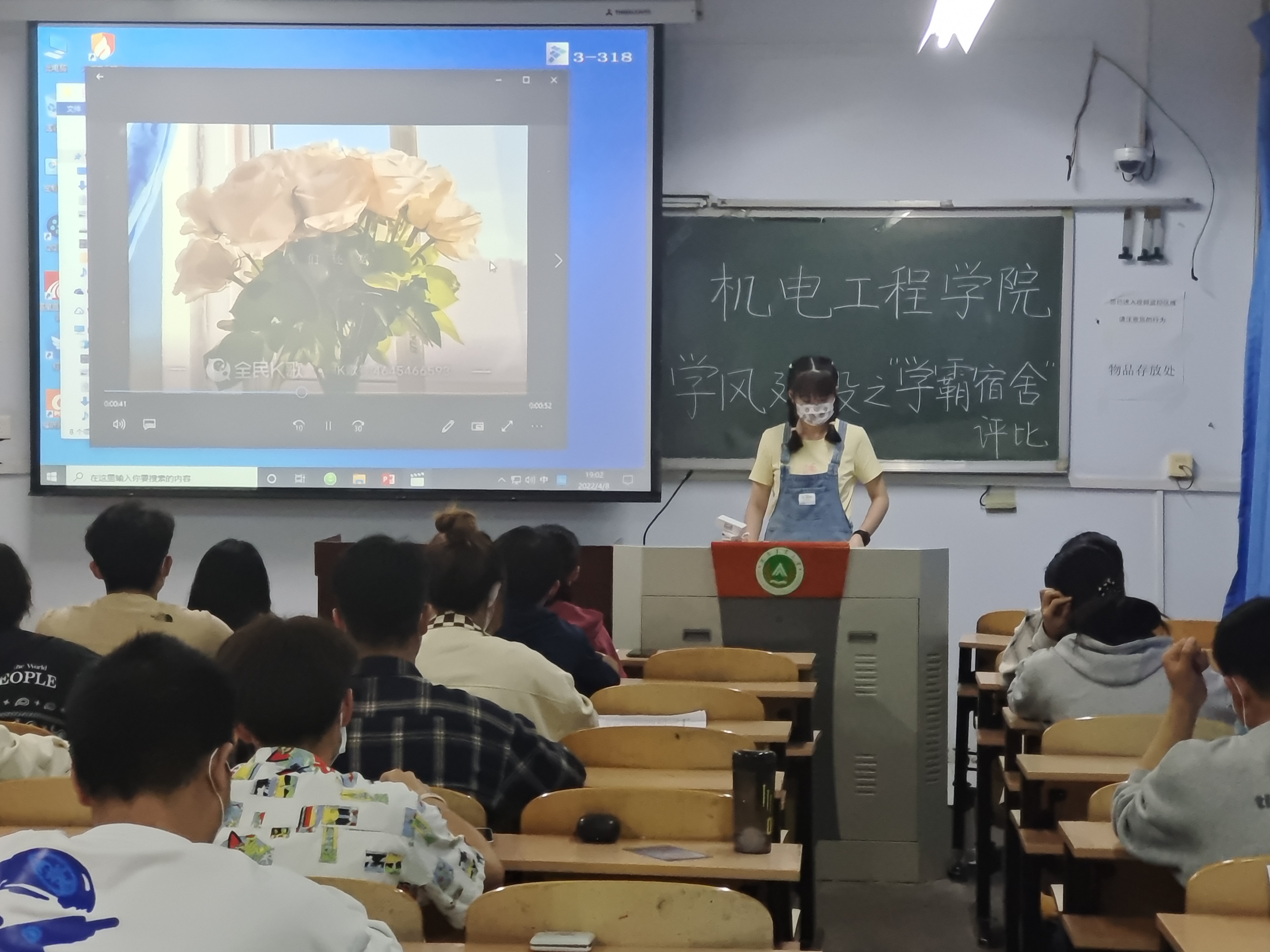 活动现场,参赛选手代表依次上台演讲。他们以PPT和短视频的形式,紧紧围绕班级所获荣誉情况、班级学风建设、宿舍成员成就及生活习惯培养等方面展开叙述。参赛代表们凭借着认真的态度、细致的描述、幽默的口吻生动展示了其独特的班级风采及宿舍文化,彰显出91猫先生