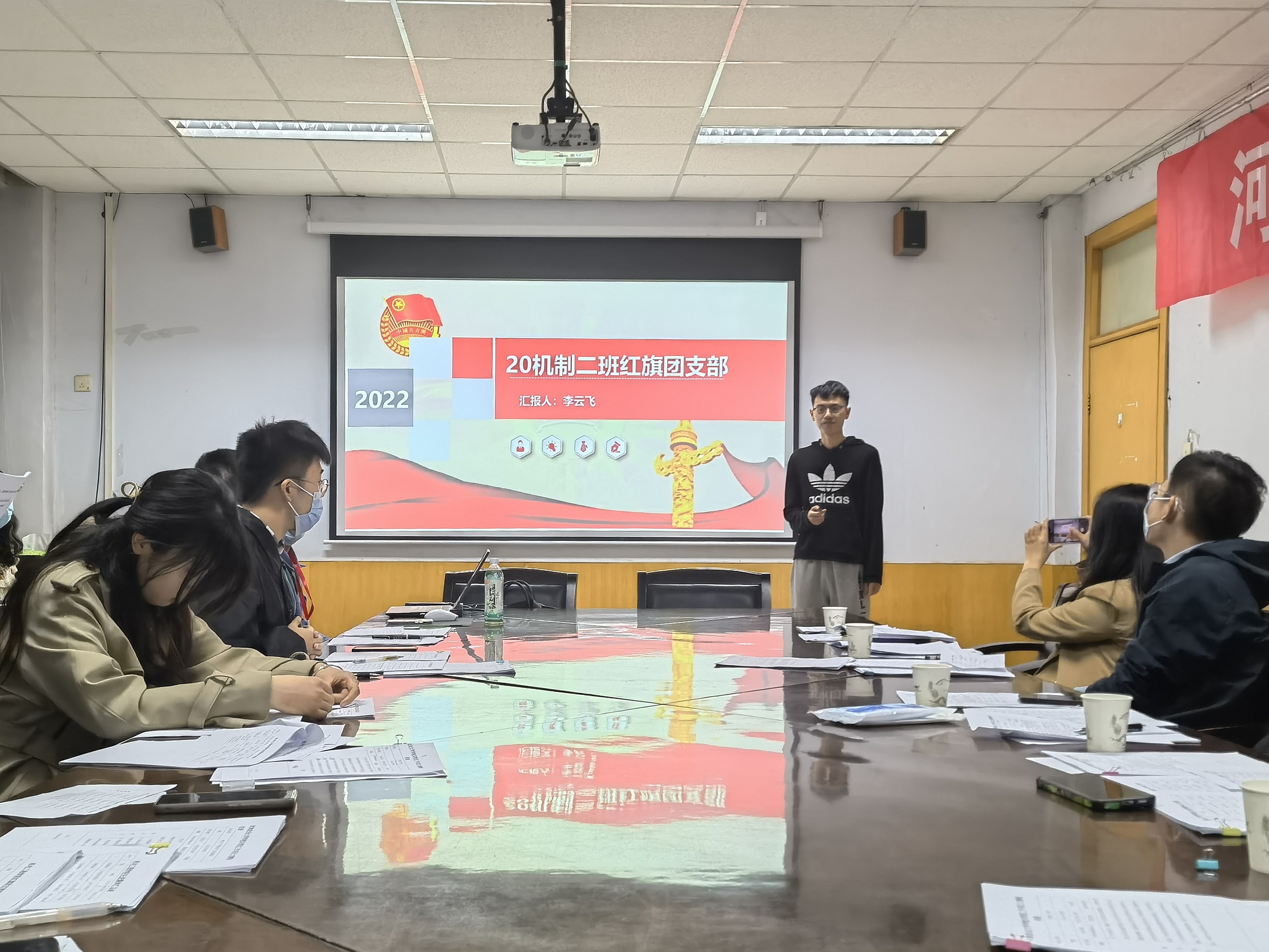 于文化路校区15号楼会议室开展先进集体、红旗团支部评选大会。年级辅导员王晓楠、徐佳亮出席此次会议,各优秀班集体代表参与此次会议。
