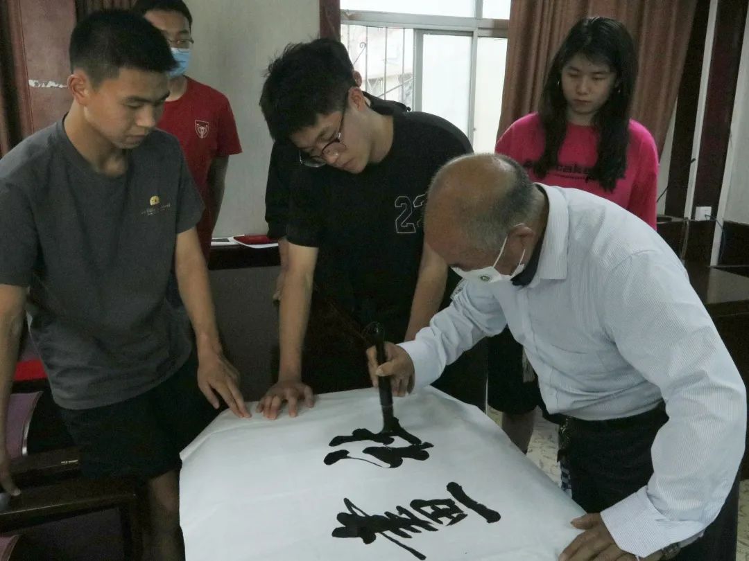 紧接着,黄笑从耕匠书画社名字讲起,围绕“耕”、“匠”二字的具体含义,向书画社成员提出殷切期望。他表示,“耕”代表农耕文明,“匠”代表工匠精神,它和我校以农耕起家的大背景相符,更与当今社会对工匠精神的传承与弘扬相吻合,希望各位同学能够时刻牢记书画社成立的初心,不断丰富校园文化艺术活动,让书画真正成为有益于广大学生身心健康和精神愉悦的一种修养。紧接着,贾连爱进行现场题字“耕匠书画社”,为耕匠书画社成员分享有关书法的心得,并对书画社未来的发展送上真切祝福。