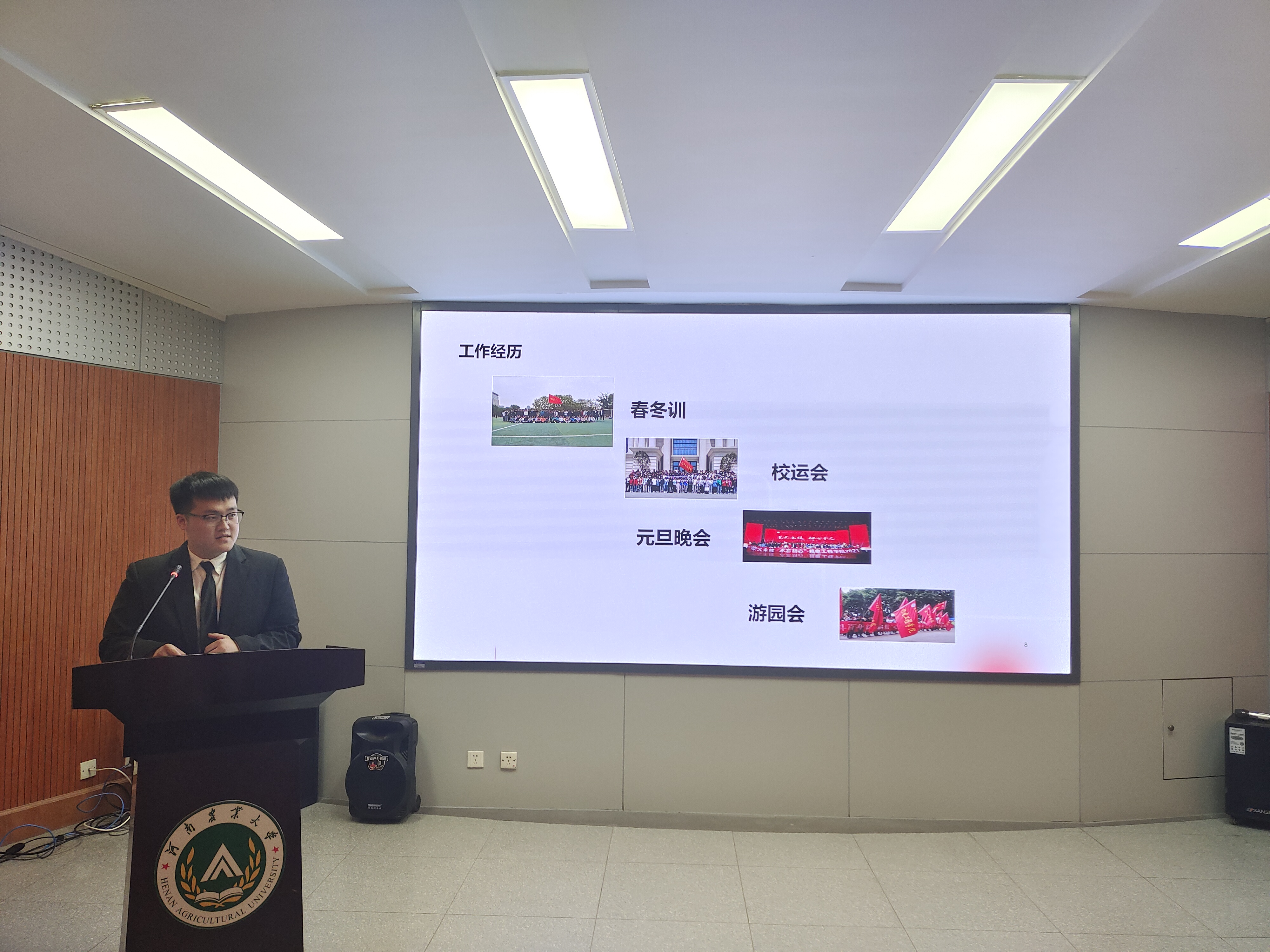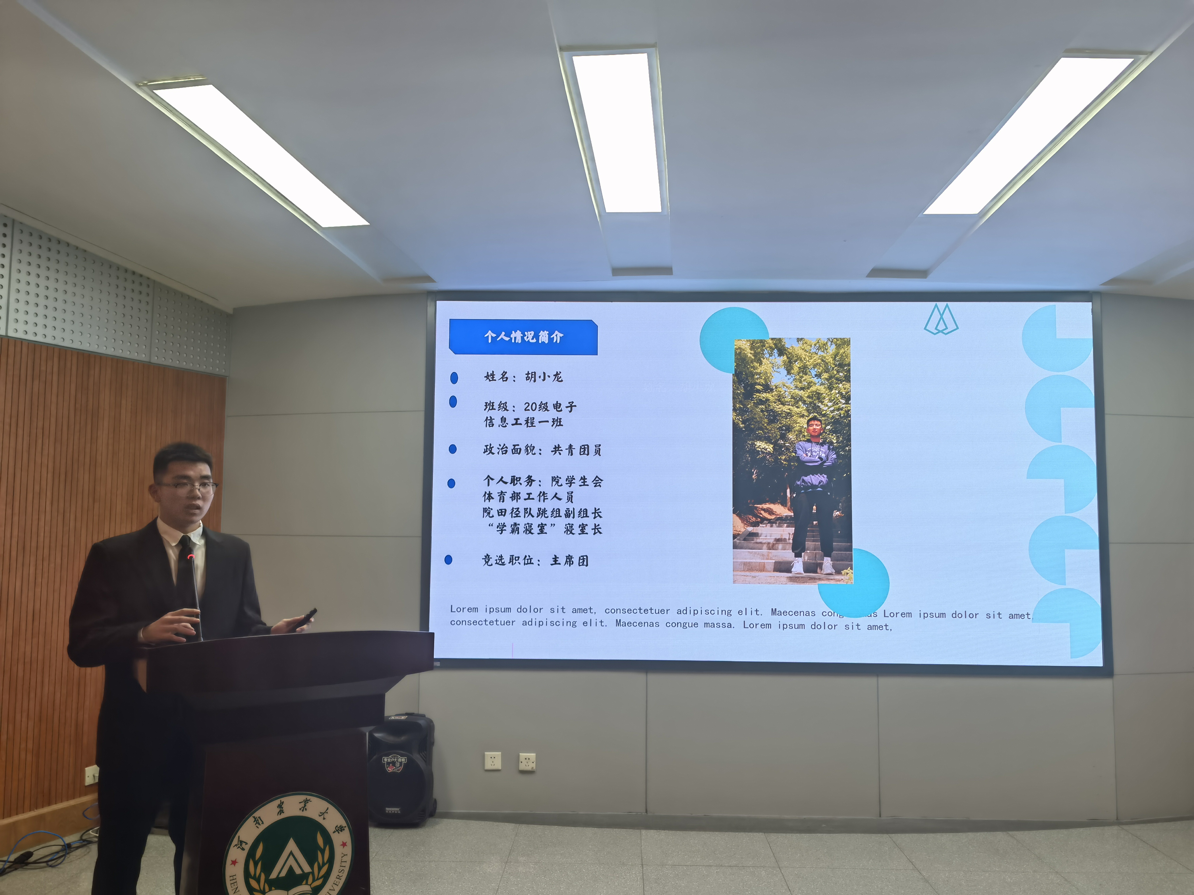 会议伊始,主持人公开宣读换届选举方法。随后,九位竞选人分别从学习、工作、生活等方面进行自我介绍,并简要阐述了对未来工作的规划以及自身竞选优势等内容。随后,进行现场答辩环节,各竞选人从容不迫、沉着冷静,以逻辑清晰的答辩、不凡的谈吐充分展现了自身的能力与特点,并结合自己的工作经验对未来工作中可能出现的问题提出独到的见解与认识,细致而深入地阐述了个人对未来学生工作发展的设想与展望。