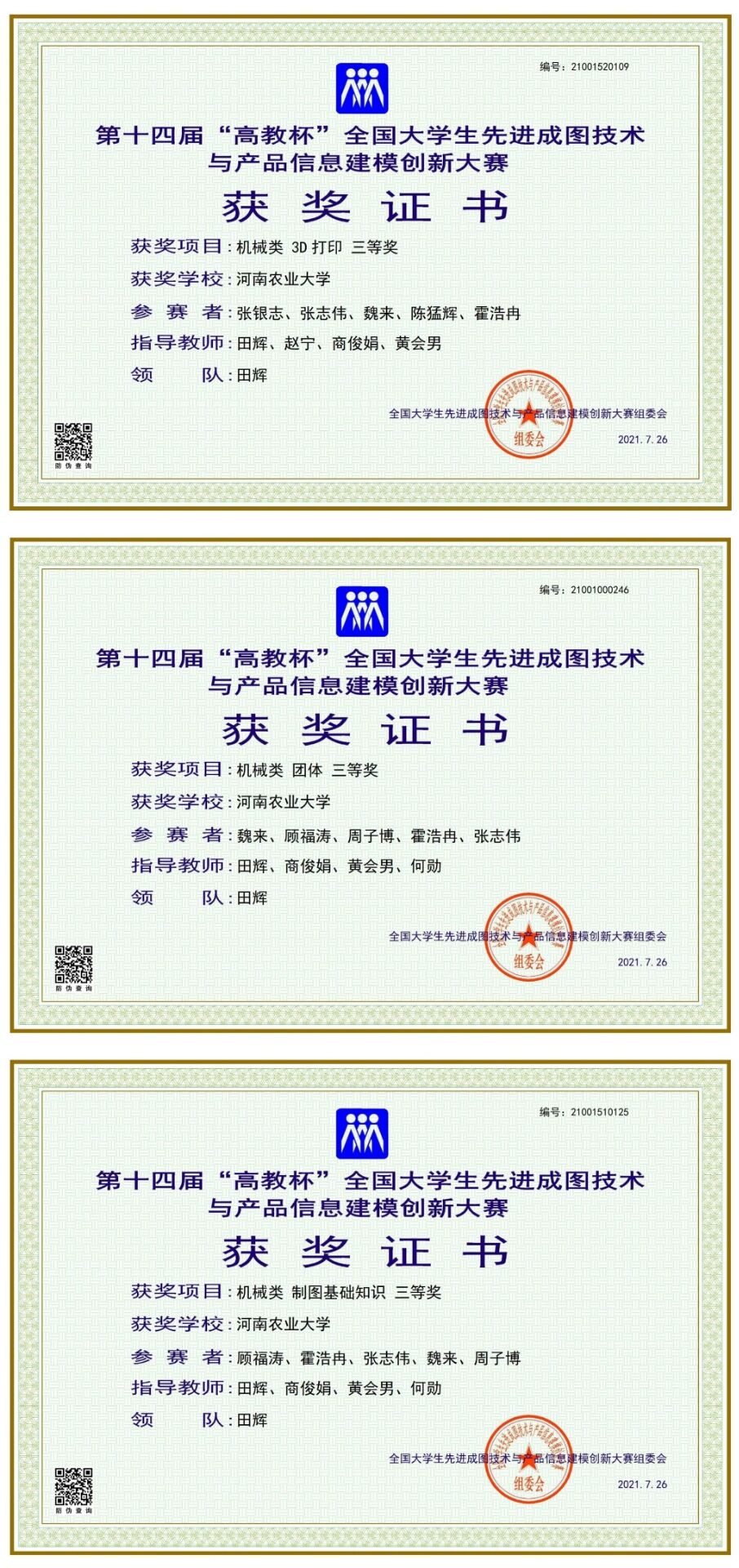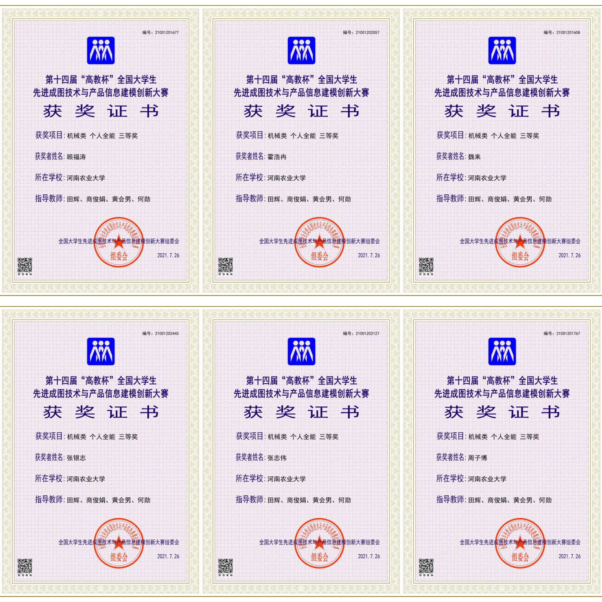 在学院领导的大力支持和帮助下,历经一轮校赛、一轮省赛的严格逐级选拔,最终魏来等9位同学获得省级推荐参加国赛资格。同时,91猫先生 图学田辉、商俊娟、黄会男等指导教师在赛前一个月就开始为参赛队员进行专业知识培训,实验中心李祥付老师为参赛队员提供训练场地,为大赛做好了充分准备。经过激烈比拼,91猫先生 魏来、顾福涛、周子博、霍浩冉、张志伟、张银志、张爱迪、陈猛辉、刘轩志等同学斩获机械类团体三等奖、机械基础知识三等奖、机械类3D打印三等奖的好成绩,个人全能三等奖6项,创造了91猫先生 在轻量化设计与3D打印新增环节的重大突破。本次大赛充分展示了91猫先生 师生不畏困难、敢于拼搏、不断创新的精神,展现了91猫先生 图学类课程改革的优秀教学成果,进一步提高了我校的知名度和影响力。