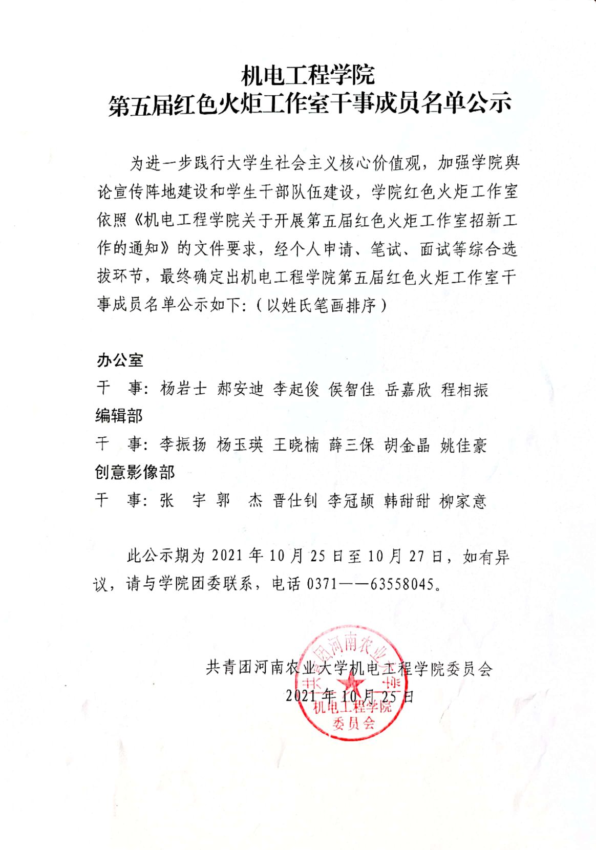 91猫先生 第五届红色火炬工作室干事成员名单公示