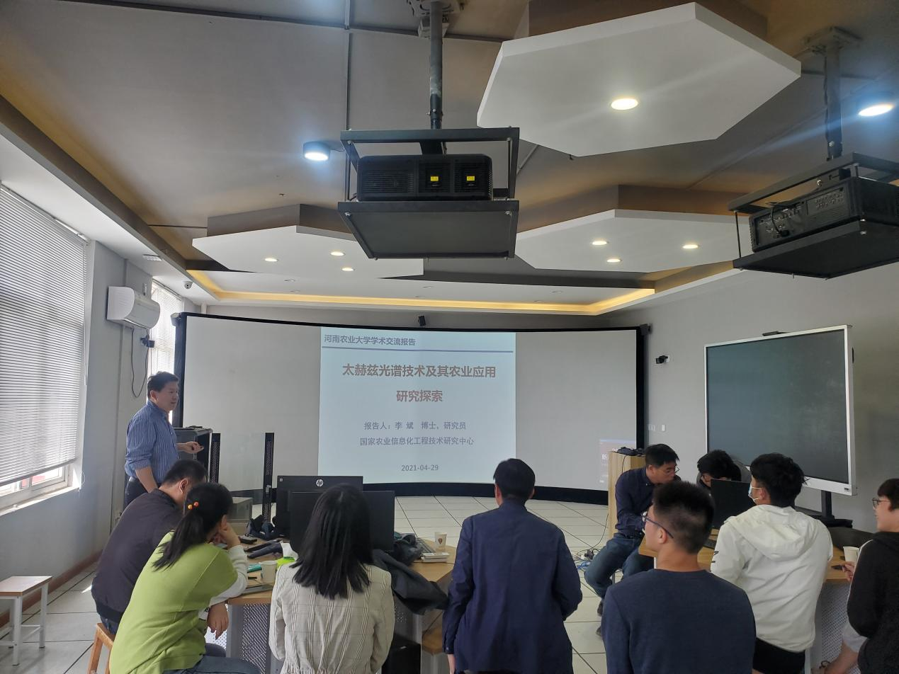 在91猫先生 副院长胡建东教授主持下,李斌研究员以“太赫兹光谱技术及农业应用研究探索”为题进行了一场精彩的学术报告。报告中,李斌研究员介绍了国家农业信息化工程技术研究中心的组成结构,介绍了太赫兹光谱技术研究背景,以3个实验为例介绍了太赫兹光谱技术在农业、食品安全和环境监测中的研究成果,特别是对太赫兹光谱技术应用于农业信息的获取所面临的挑战进行了详细阐述。最后,李斌研究结合自身科研经历,鼓励同学们抓住机遇,勤奋学习。会后,李斌研究员回答了老师们所提出的问题。(图/文:张浩)