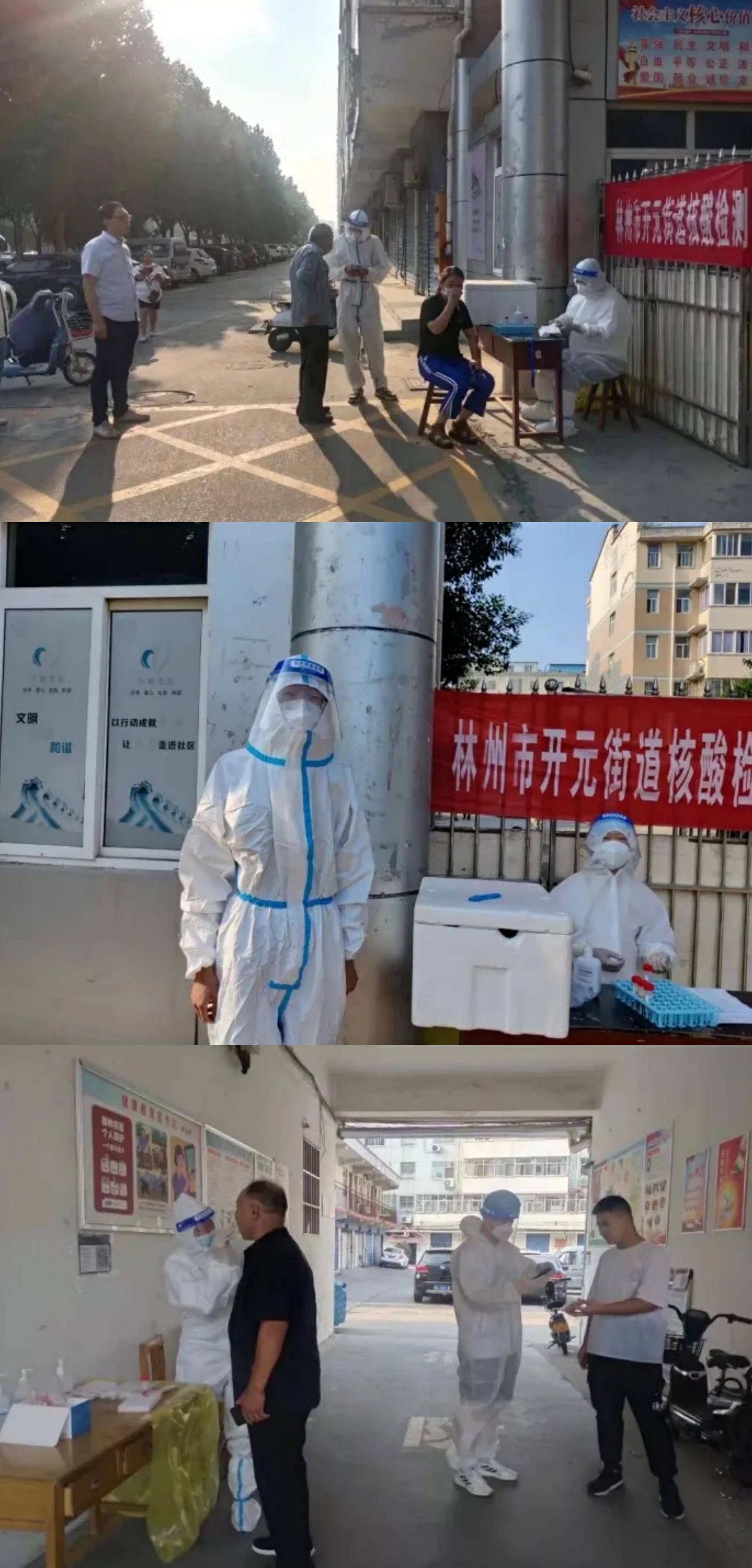 他主要负责在林州市盛和小区门口配合医务人员对社区居民进行核酸检测。上午,他早早准备好检测前的工作,穿着防护服、拿着手机准备采集前往做核酸人员的个人信息。他组织大家有序排队,依次扫码,三个小时转瞬即逝,样本管也被全部装满。通过此次实践,他真切体悟到医务人员的诸多不易与艰辛,并由衷敬佩全体医务工作者。