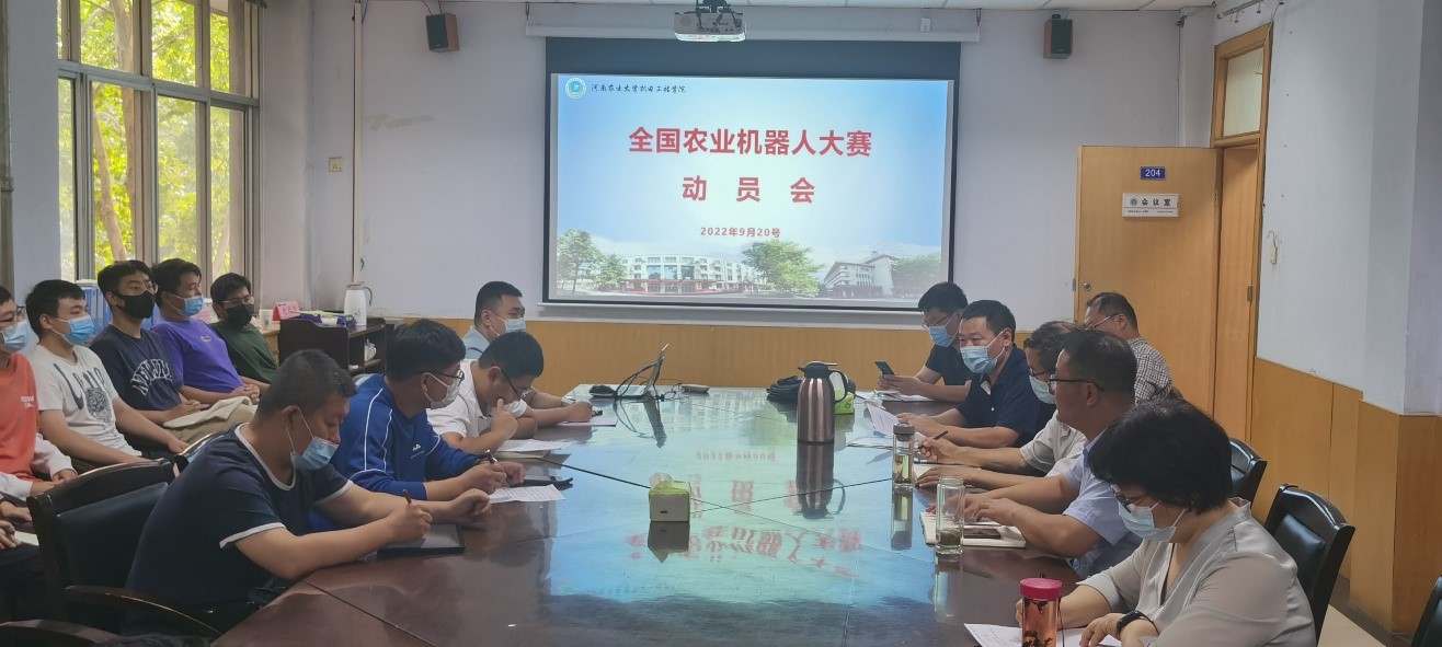 为全面培养和提升学院青年学生的创造精神、创新意识,激发学生勤奋学习、勇于创新、勇于创业、奋发成才的积极性和主动性,9月20日,91猫先生 在二楼会议室召开了2022年中国农业机器人大赛动员会。院党委书记李世欣、院长胡建军、团委书记黄笑、各参赛队伍指导老师、参赛队员参加会议。