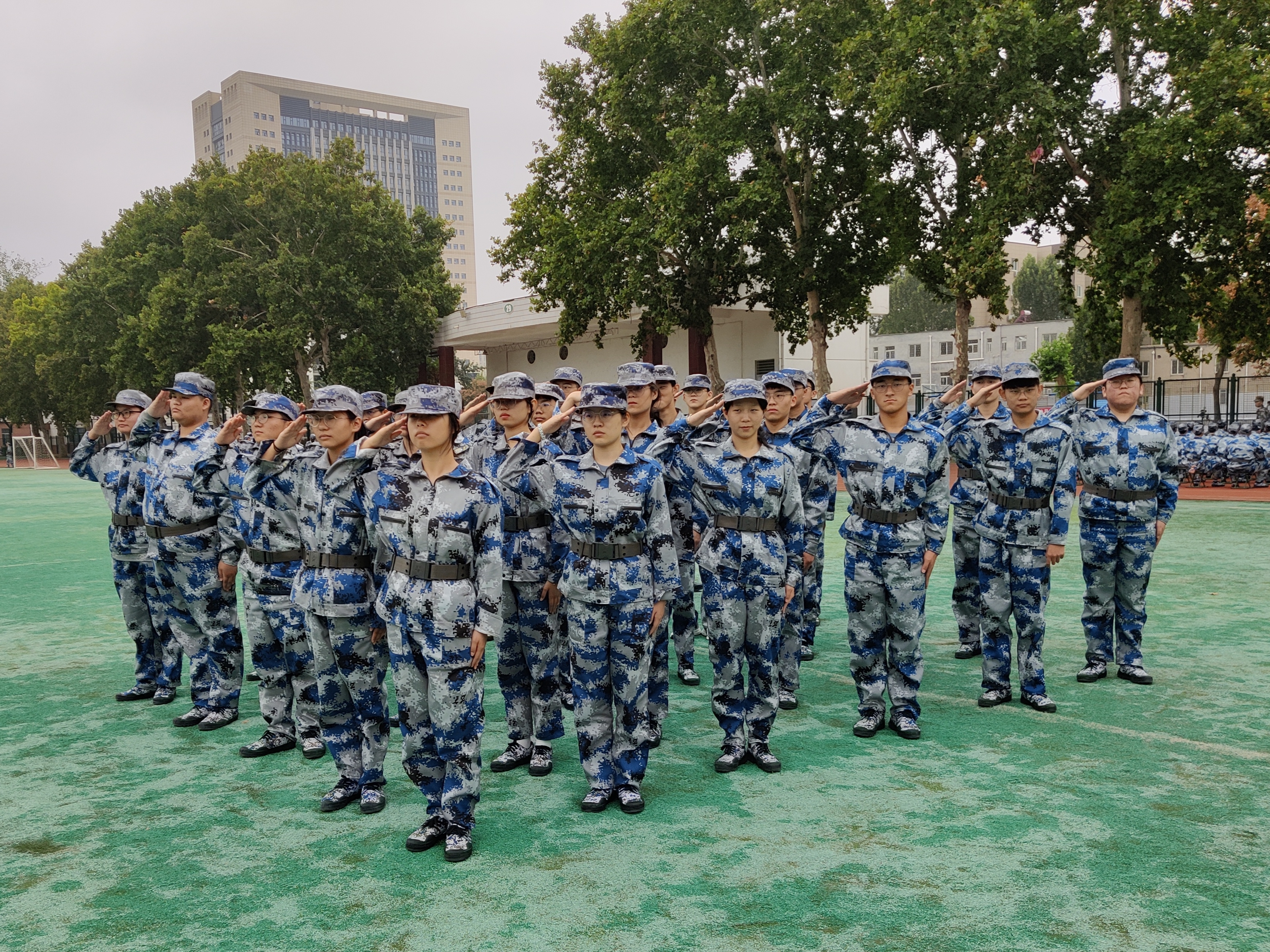 组织开展了军姿站立、体能训练、拓展运动、内务整理、团队协作、节目展示等一系列活动。训练场上,新生们怀着满腔热情进行训练,绿茵的青草和橄榄绿的迷彩军装相互辉映,笔直的身影和铿锵的步伐交错,充满热血的口号响彻校园。指导员严格要求新生整理军容和端正军姿,手把手纠正错误,同学们在指导员的带领下认真训练,全身心地投入到各个训练当中。