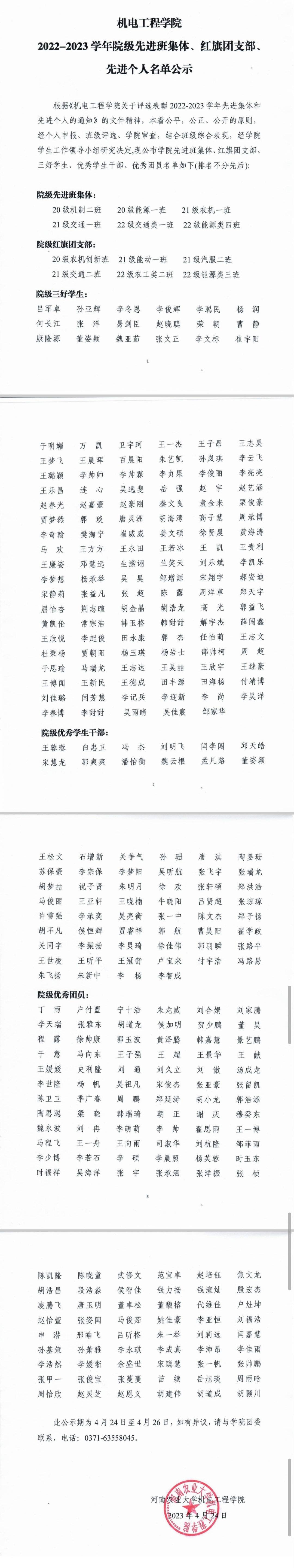 根据《91猫先生 关于评选表彰2022-2023学年先进集体和先进个人的通知》的文件精神,本着公平,公正、公开的原则,经个人申报、班级评选、学院审查,结合班级综合表现,经学院学生工作领导小组研究决定,现公布学院先进班集体、红旗团支部、三好学生、优秀学生干部、优秀团员名单如下(排名不分先后):