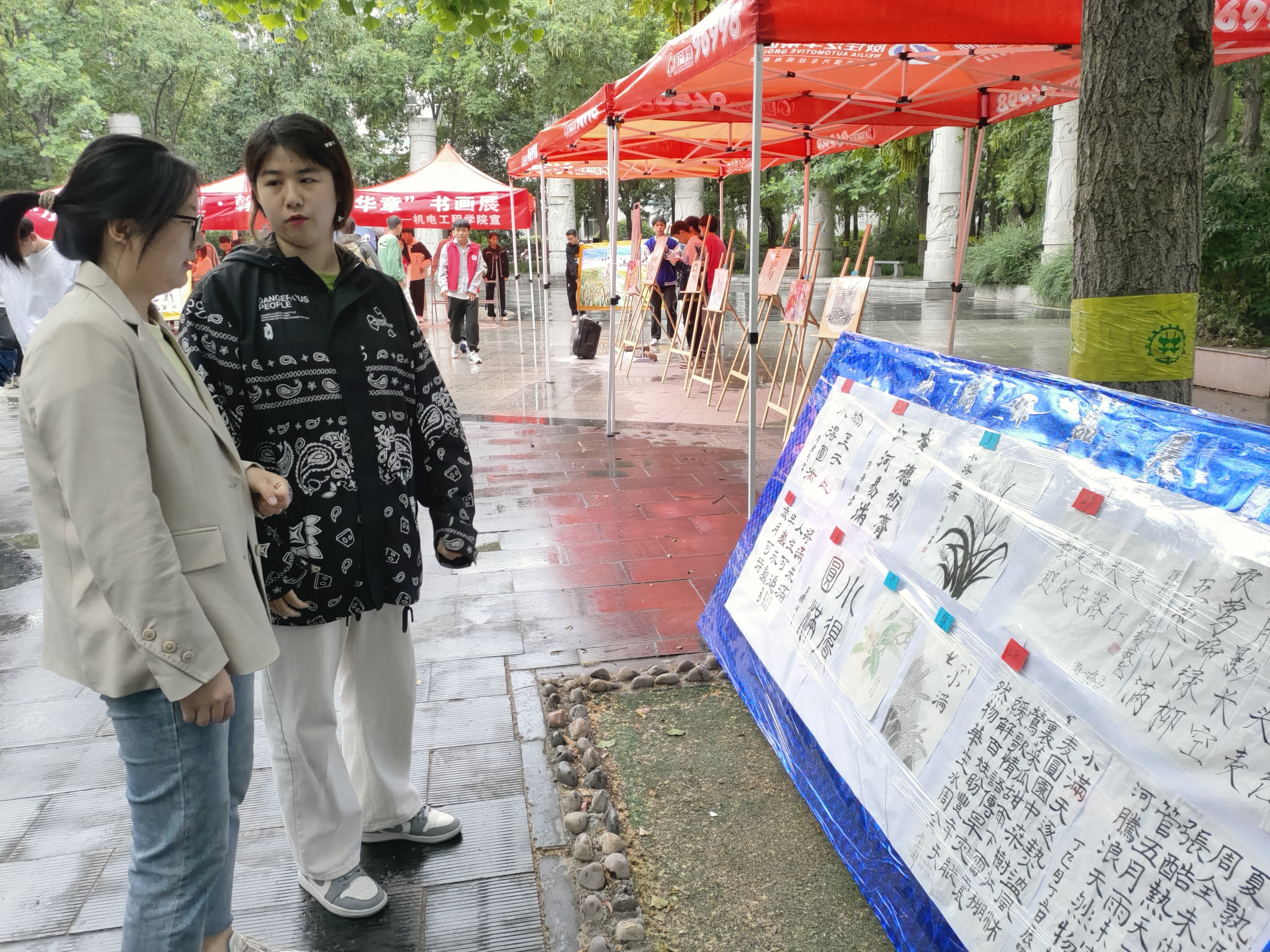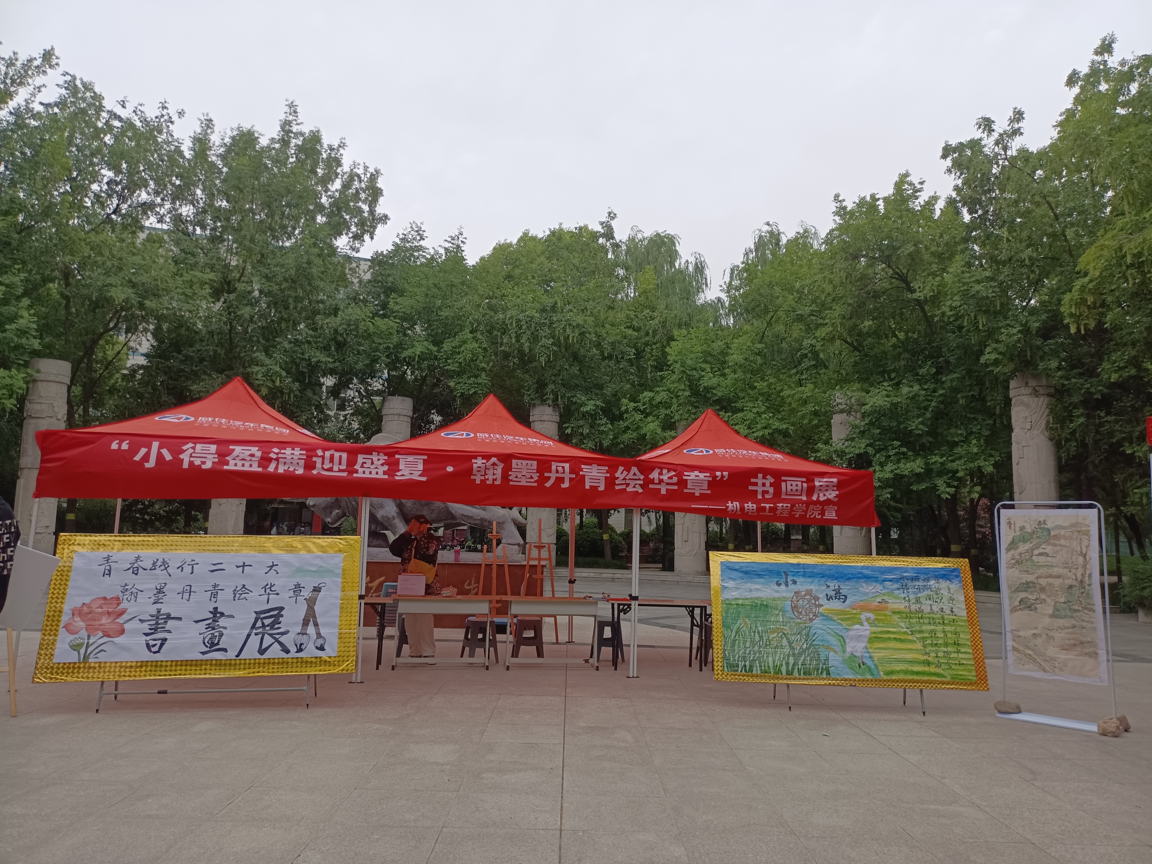 于文化路校区牧医广场开展“小得盈满迎盛夏,翰墨丹青绘华章”书画展活动。年级辅导员孙改革出席此次活动,广大学子积极参加。
