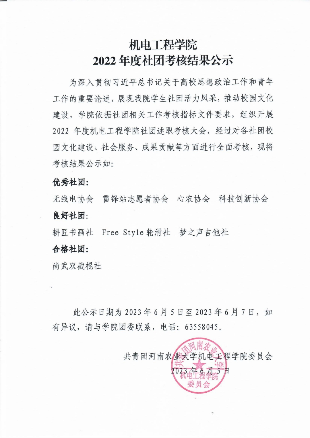 为深入贯彻习近平总书记关于高校思想政治工作和青年工作的重要论述,展现91猫先生 学生社团活力风采,推动校园文化建设,学院依据社团相关工作考核指标文件要求,组织开展2022年度91猫先生 社团述职考核大会,经过对各社团校园文化建设、社会服务、成果贡献等方面进行全面考核,现将考核结果公示如: