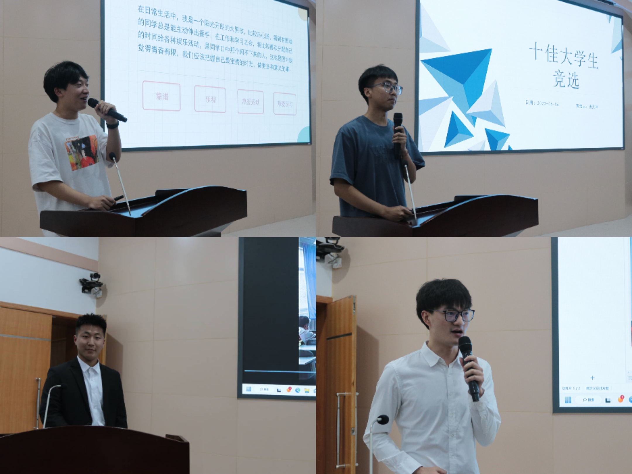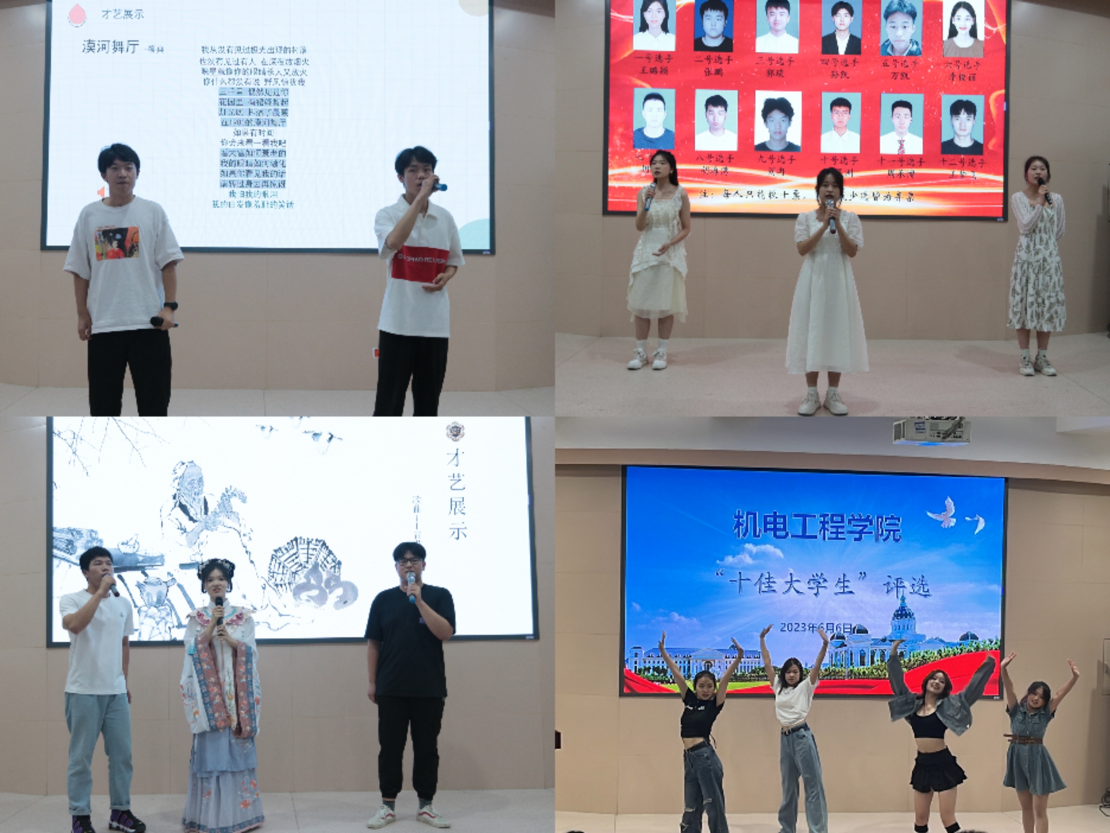 关于评选2023年十佳大学生的通知》的要求,本着公平、公正、公开的原则,经个人申报,学院审查,结合学生个人综合表现,最终选拔12人参加现场决赛。