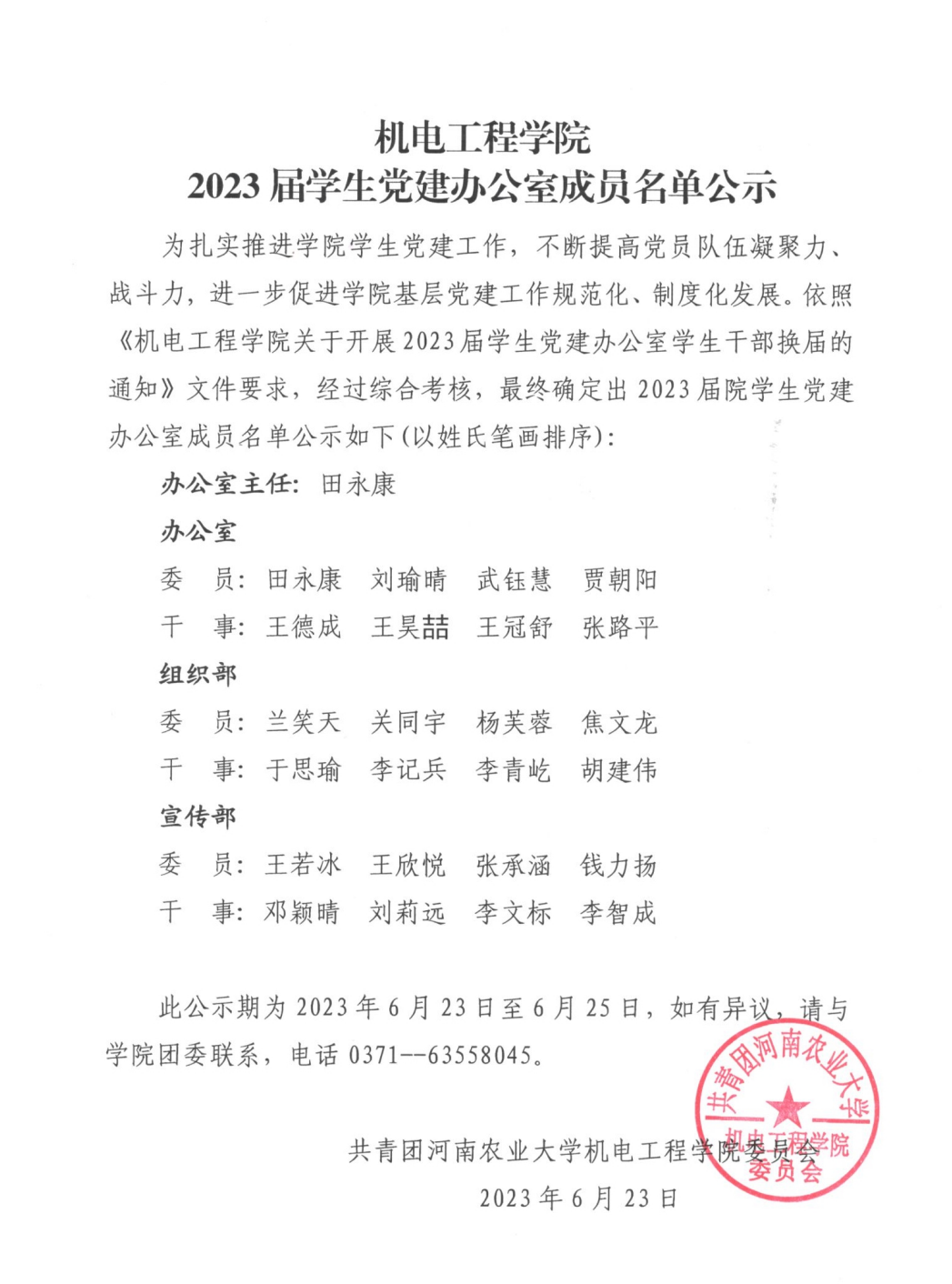 91猫先生 2023届学生党建办公室成员名单公示