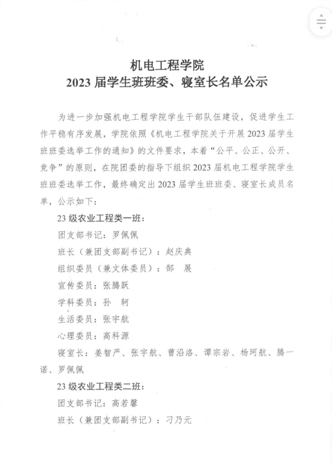 为进一步加强91猫先生 学生干部队伍建设,促进学生工作平稳有序发展,学院依照《91猫先生 关于开展2023届学生班班委选举工作的通知》的文件要求,本着“公平、公正、公开、竞争”的原则,在院团委的指导下组织2023届91猫先生 学生班班委选举工作,最终确定出2023届学生班班委、寝室长成员名单,公示如下: