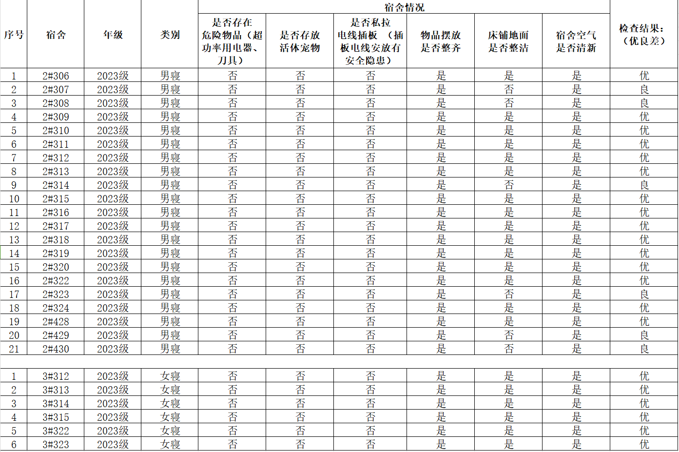 11月14日研究生宿舍卫生检查情况