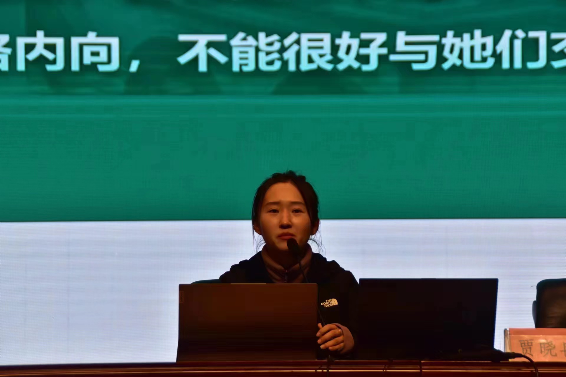 贾晓冉首先由“大学与高中的区别”问题引出今天的讲座内容,通过生动具体的案例与学生们进行互动,鼓励有需要的学生积极寻找心理委员、学校心理咨询站等寻求帮助。