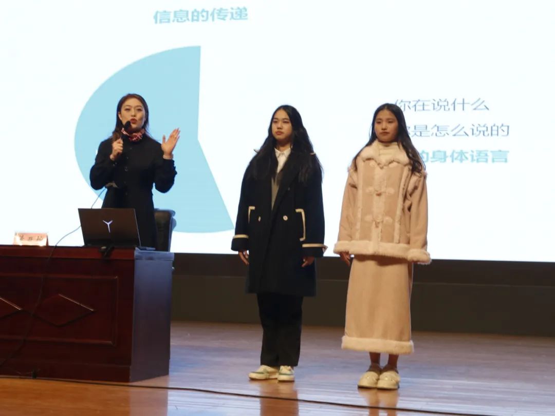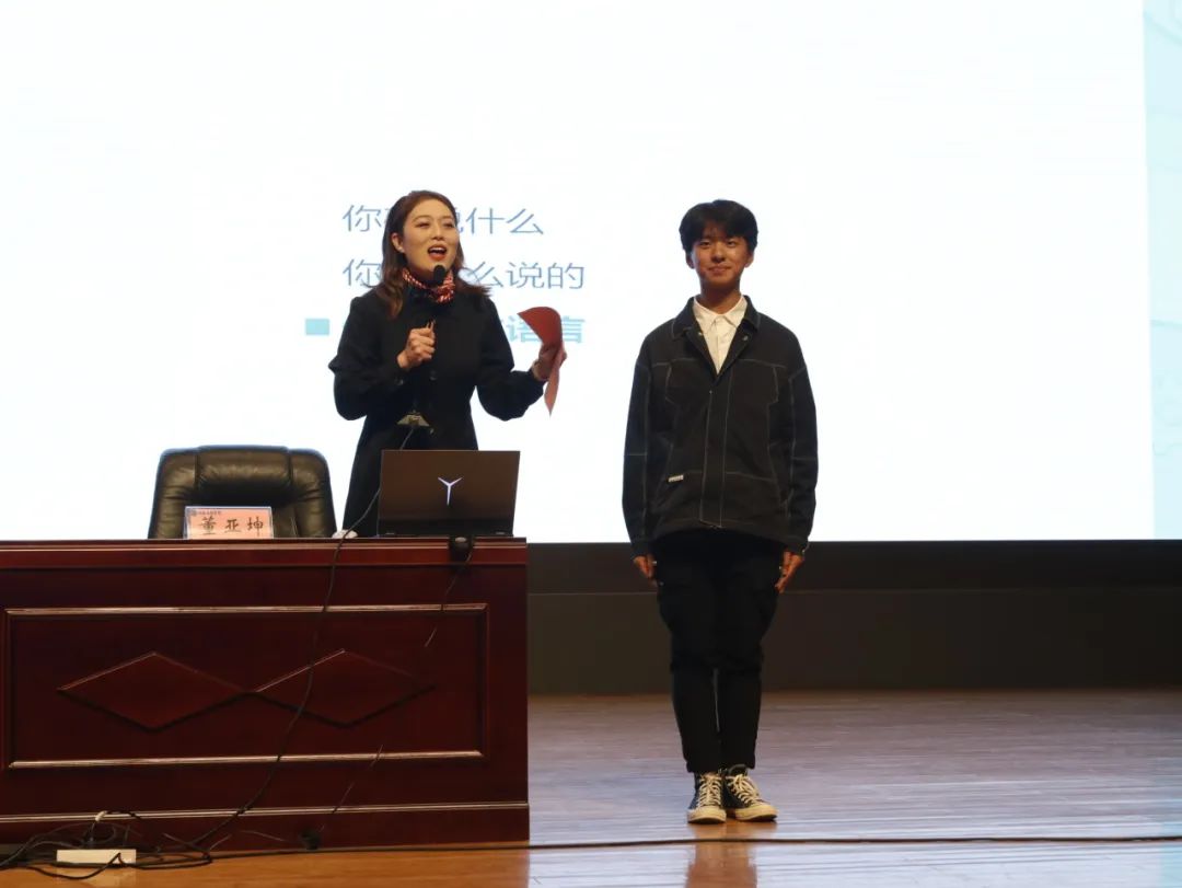 董亚坤围绕“礼在心中,仪化于行”主题,从仪容仪表、着装规范及日常社交礼仪三个方面展开,生动阐述了礼仪对当代青年的重要性。宣讲内容丰富,通俗易懂、幽默风趣,紧贴日常生活实际,实用性和操作性都很强。为了增强效果,董亚坤还以端庄优雅的姿态为现场师生亲自示范,同时邀请学生代表进行互动,就大家都熟悉的场合开展情景式教学,活动现场气氛活跃。讲座期间,同学们热情高涨,积极互动,在欢快的氛围中学到了文明礼仪知识