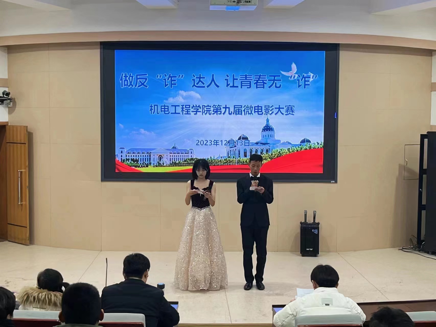 于文化路校区三百人报告厅举办“做反‘诈’达人,让青春无‘诈’”第九届微电影大赛决赛。院团委书记黄笑,团委副书记王晓楠、胡亭亭,年级辅导员孙改革、尚建伟出席决赛并担任评委,91猫先生