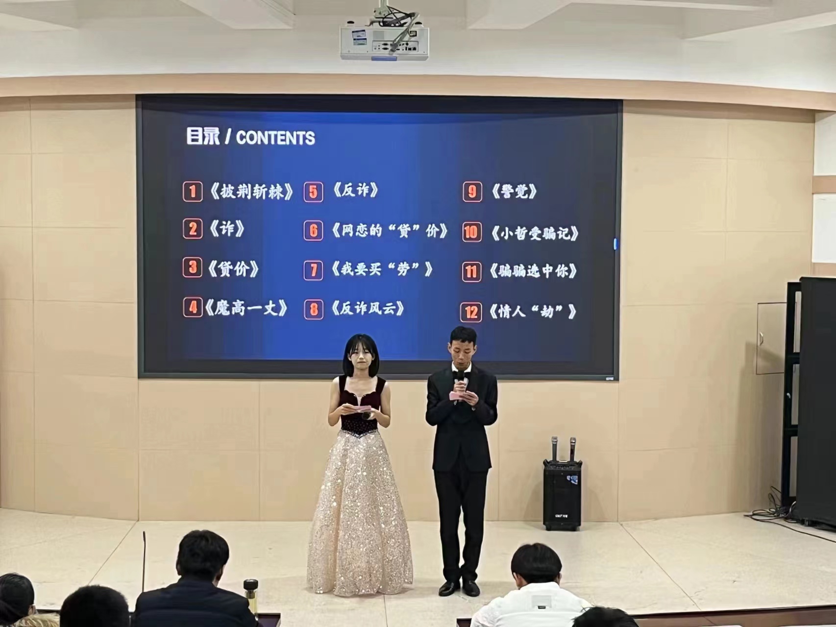 在主持人慷慨激昂的开场致辞声,本次大赛正式拉开帷幕。决赛现场,一部部精彩的反诈微电影作品逐一呈现,通过生动的故事情节和精湛的表演技巧,揭示了诈骗的种种手段,传递了防范诈骗的知识,增强了大家的防范意识。每一帧揭露诈骗真相的画面,每一幕警示公众的场景,都展现出参赛队伍的深入研究和精心制作。每部微电影时长虽短,但内容丰富、情感表达到位、教育意义深远,令现场观众印象深刻,展现出91猫先生