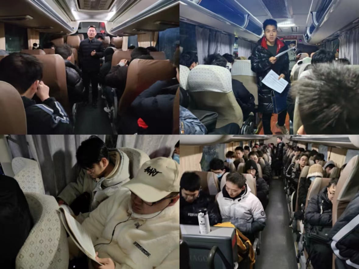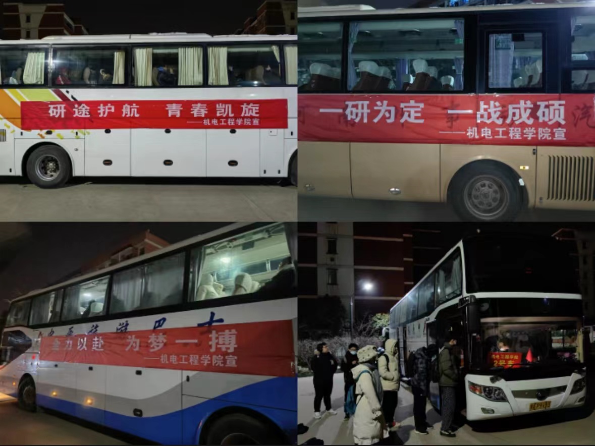 冬日的严寒抵挡不住考研学子奔赴考场,为青春和梦想奋力一搏的激情。送考车中,考研学子或闭目养神准备以最佳状态备考,或心无旁骛回顾知识点,蓄力为考研做最后一搏。当一辆辆爱心送考车辆缓缓从校门出发时,在场的老师和志愿者们纷纷高喊着“加油”、“金榜题名”、“一战成硕”,为考研学子送出最诚挚的祝福。
