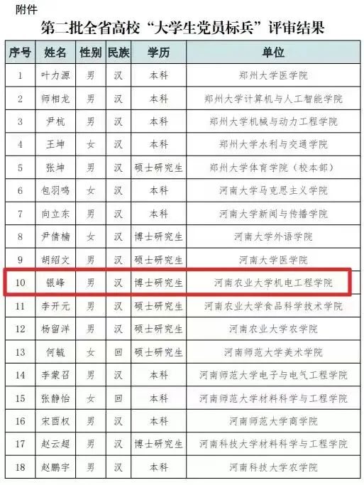 21级博士生银峰成功入选,获评河南省“大学生党员标兵”荣誉称号。