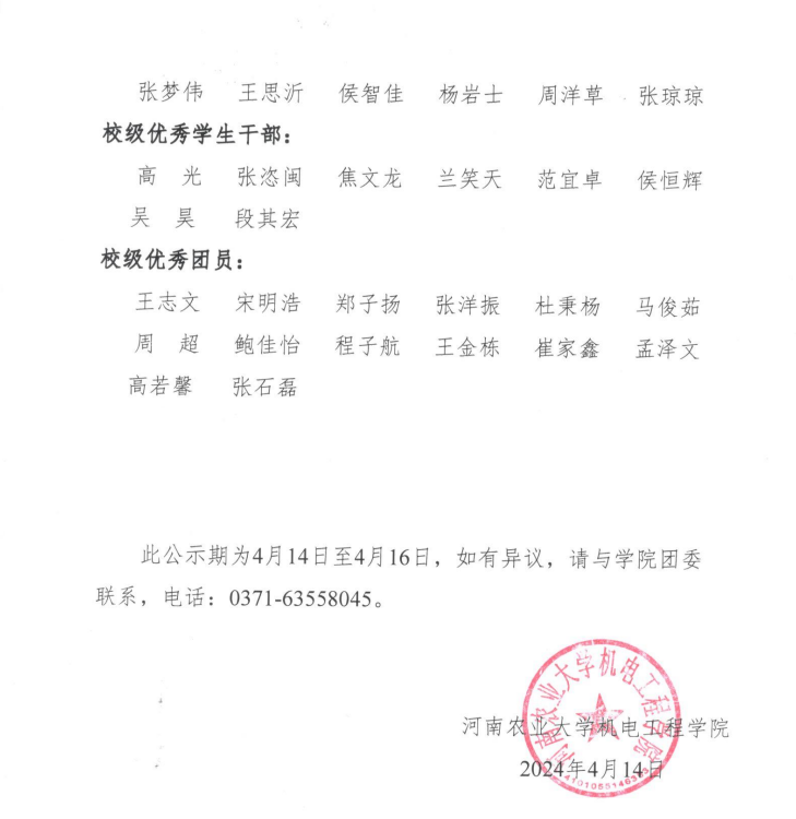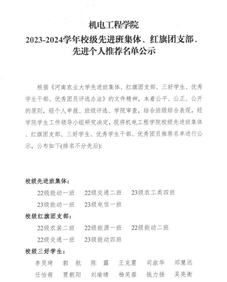 91猫先生 2023-2024学年校级先进班集体、红旗团支部、先进个人推荐名单公示