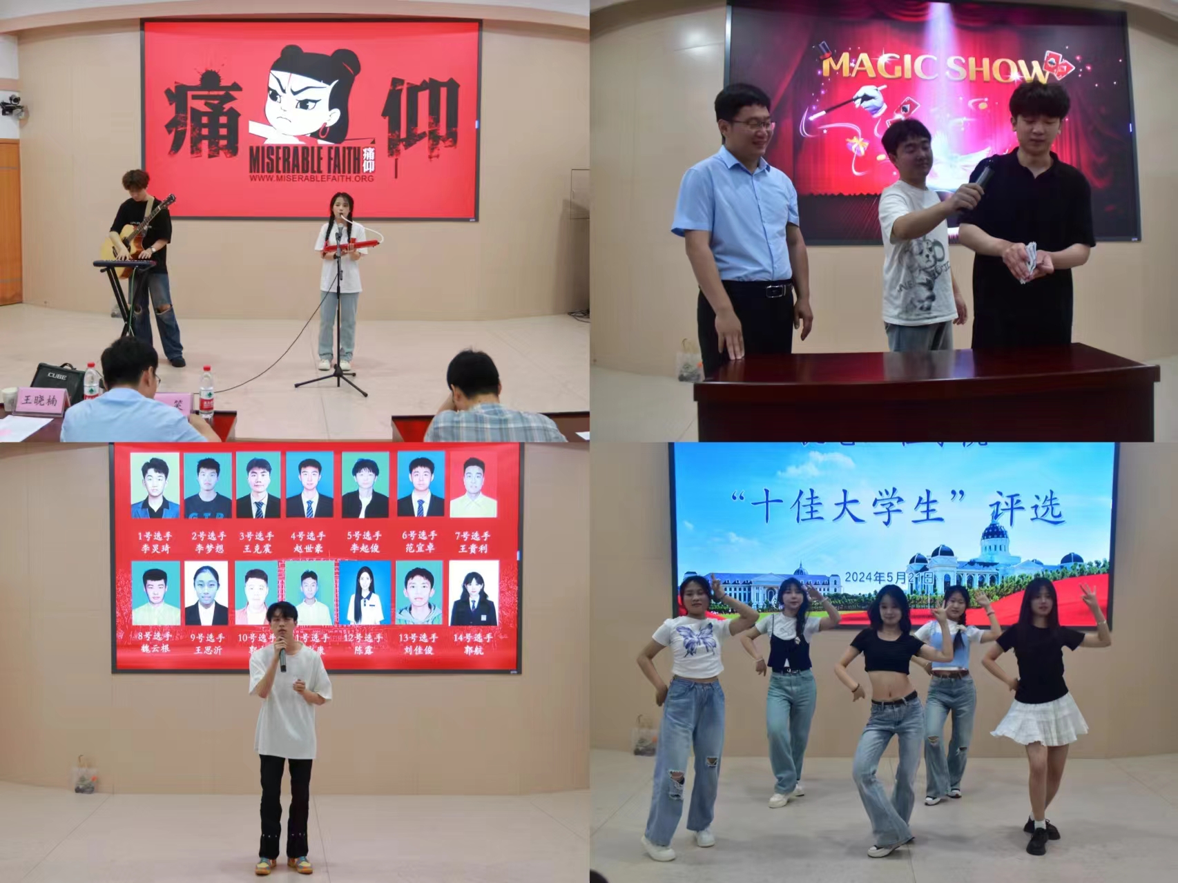 关于评选2024年十佳大学生的通知》的要求,本着公平、公正、公开的原则,经过个人申报和学院审查,结合学生个人综合表现,最终选拔出14名候选人参加现场决赛。