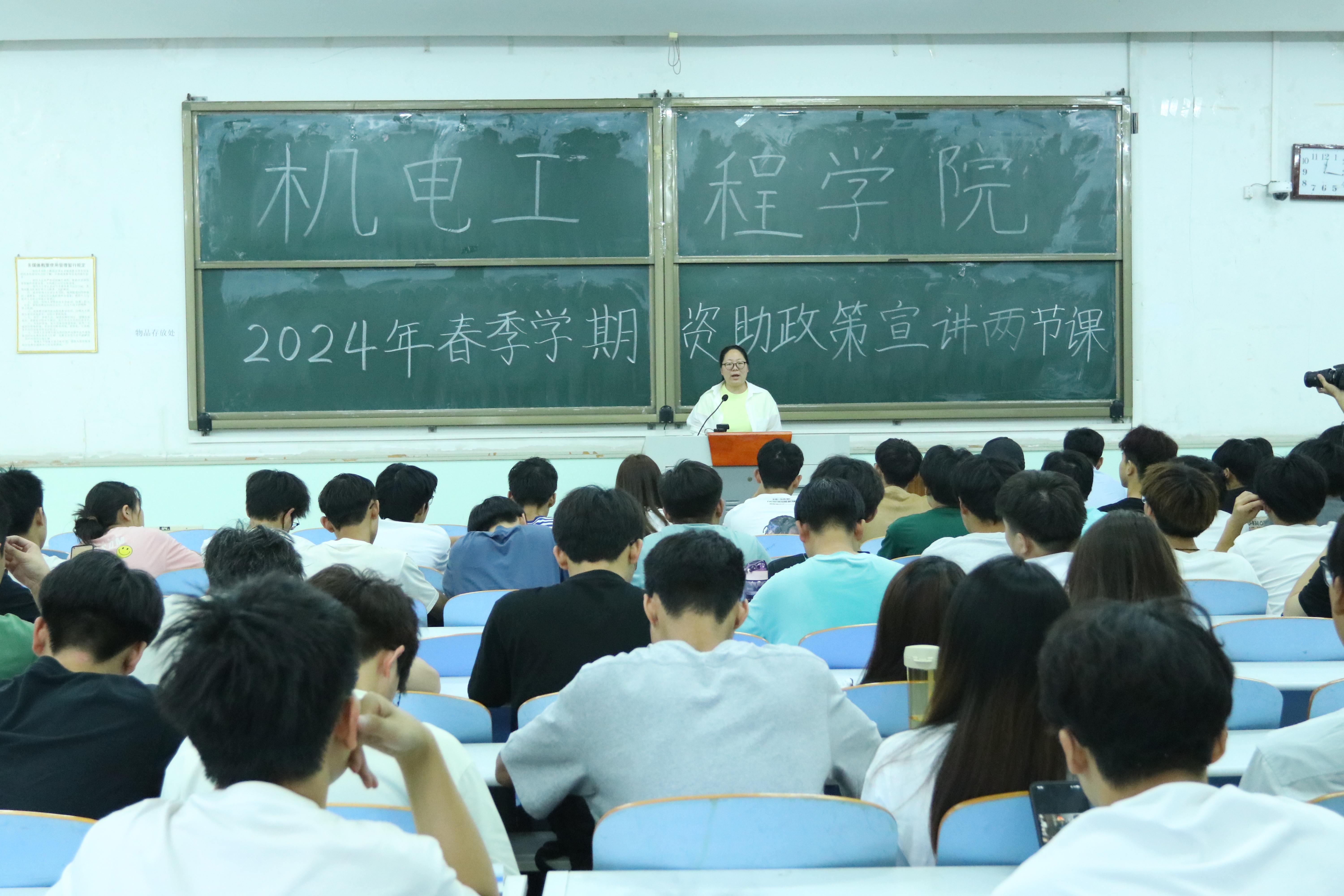 孙改革首先对国家相关资助政策进行宣讲,鼓励家庭经济困难的学生及时申请助学贷款和奖助学金,强调要增强诚信意识,按时还款。紧接着,她详细介绍暑期“三下乡”暑期社会实践活动的相关内容及要求。最后,她强调临近期末,班长支书要做好带头作用,引领班级同学端正学习态度,提高学习成绩。