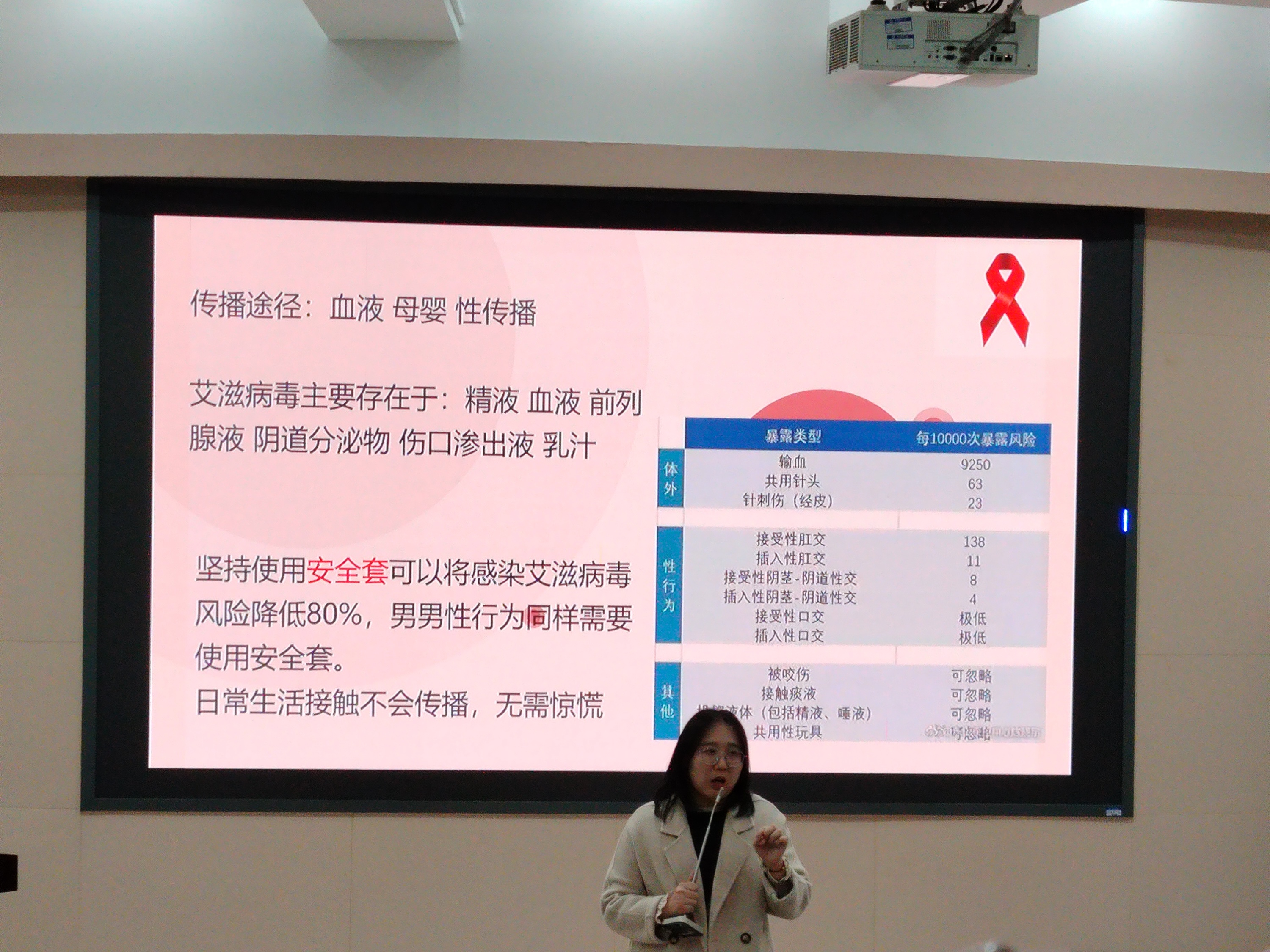 同时,赵蕊特别强调了艾滋病防治的重要性。她深入讲解了艾滋病的传播途径、预防措施以及阻断方法,并鼓励女生们提升自我保护意识,携手共建健康防线。通过生动的案例和深入浅出的讲解,赵蕊使女生们对艾滋病有了更为全面且深入的了解。