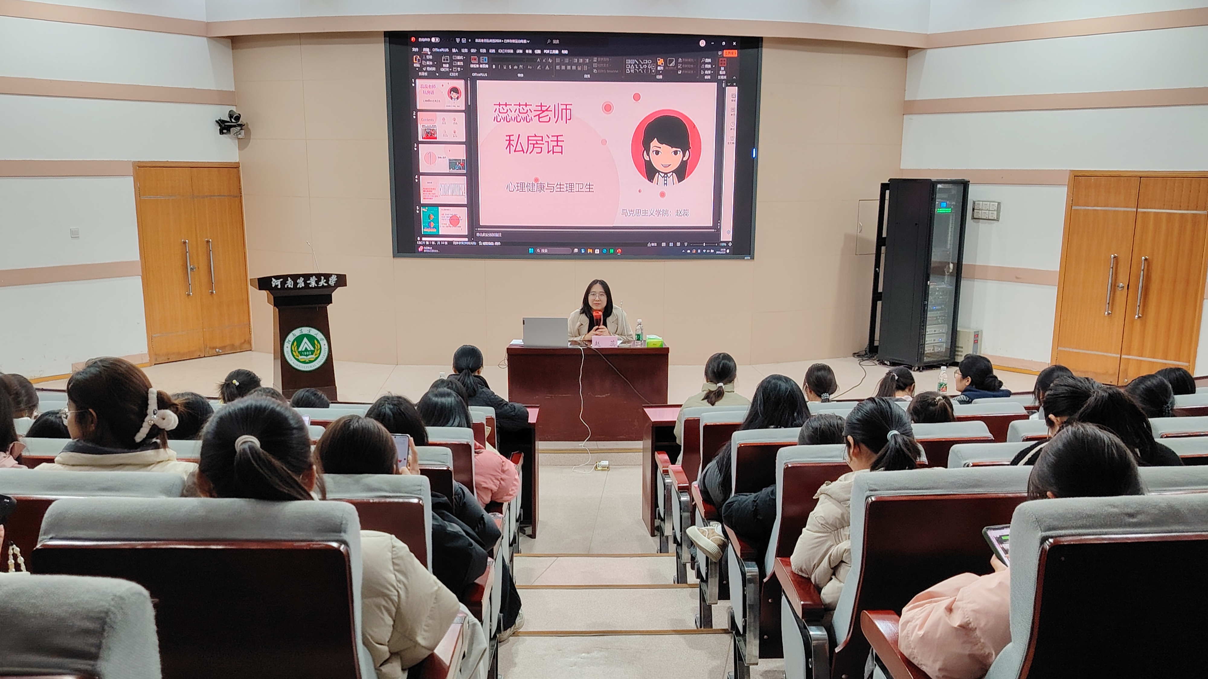 于文化路校区三百人报告厅开展“蕊蕊老师私房话”活动。此次活动由我校马克思主义学院教师赵蕊主讲,91猫先生