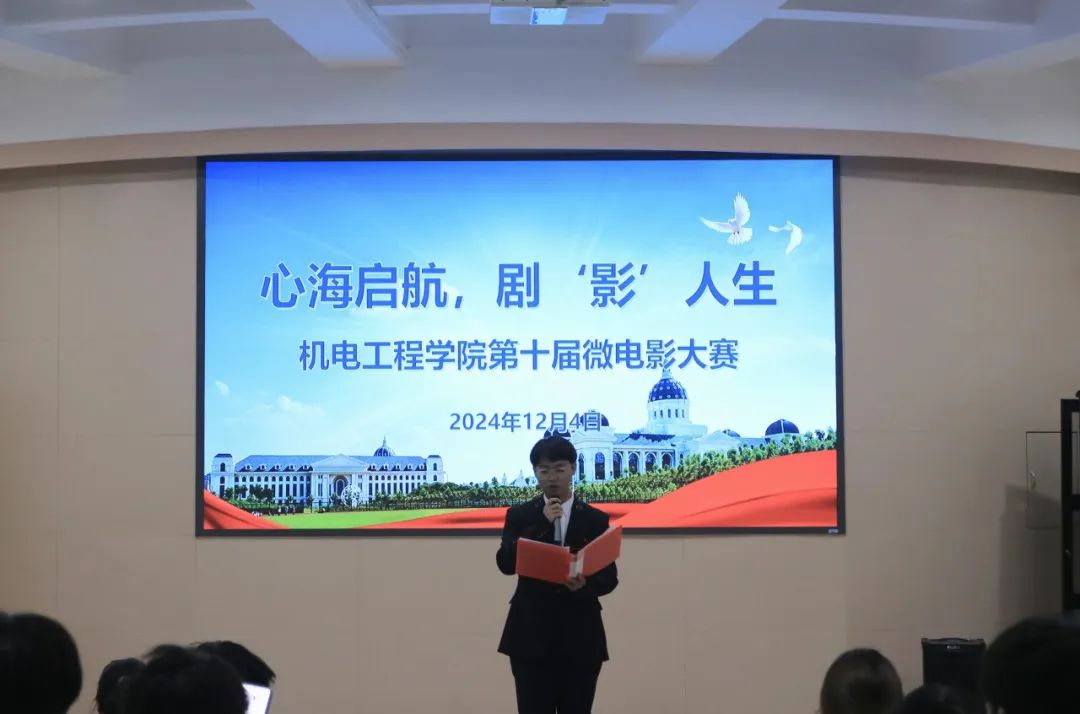 于文化路校区三百人报告厅举办“心海启航,剧‘影’人生”第十届微电影大赛决赛,院团委副书记胡亭亭,年级辅导员孙改革、梁凯凯和24级学生代表参与本次大赛并担任评委。