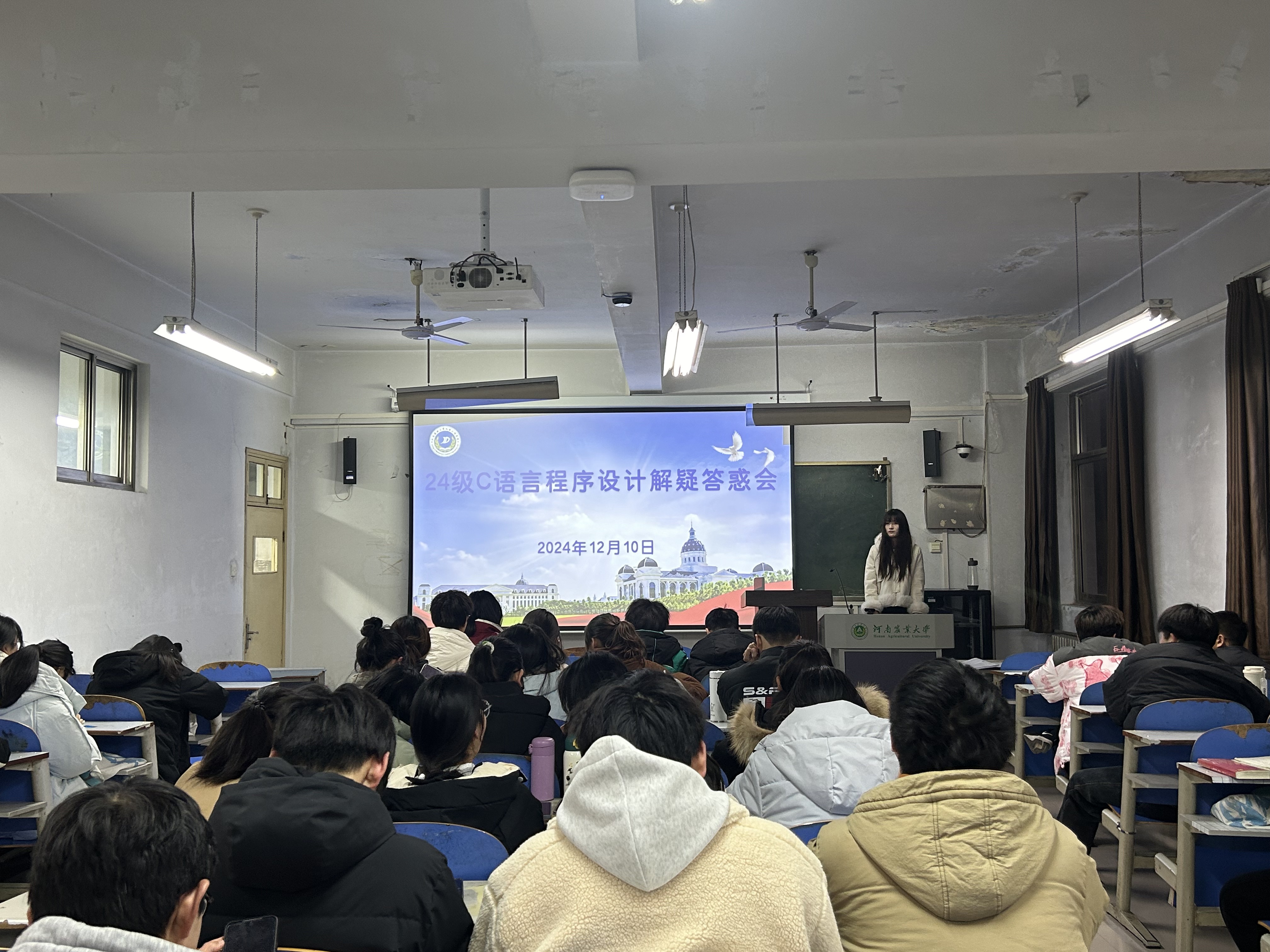 本学期第二场解疑答惑会于12月10日晚在桃李园学生公寓桃东楼608教室召开,由2023级优秀学生徐诺主讲,年级辅导员梁凯凯出席,24级电信专业学生参加。