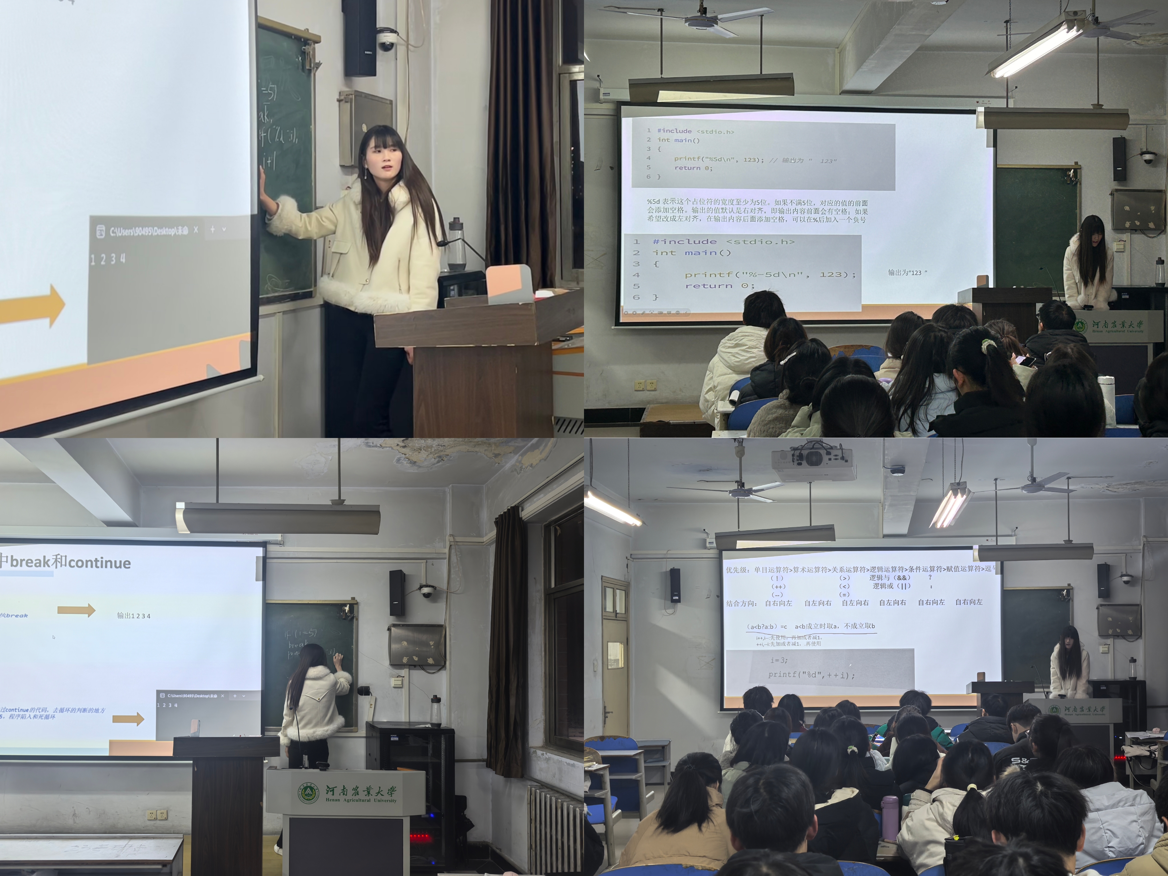 会上,徐诺根据同学们在日常学习中遇到的难点问题,精心准备了C语言程序设计的重难点讲解内容。她通过一系列生动的实例和详细的代码演示,将原本复杂抽象的知识点变得浅显易懂,帮助同学们清晰地理解并掌握了这些内容。徐诺的讲解条理清晰、逻辑严密,同时富有启发性,使同学们在轻松愉快的氛围中加深了对C语言的理解,并激发了他们进一步探索的兴趣。