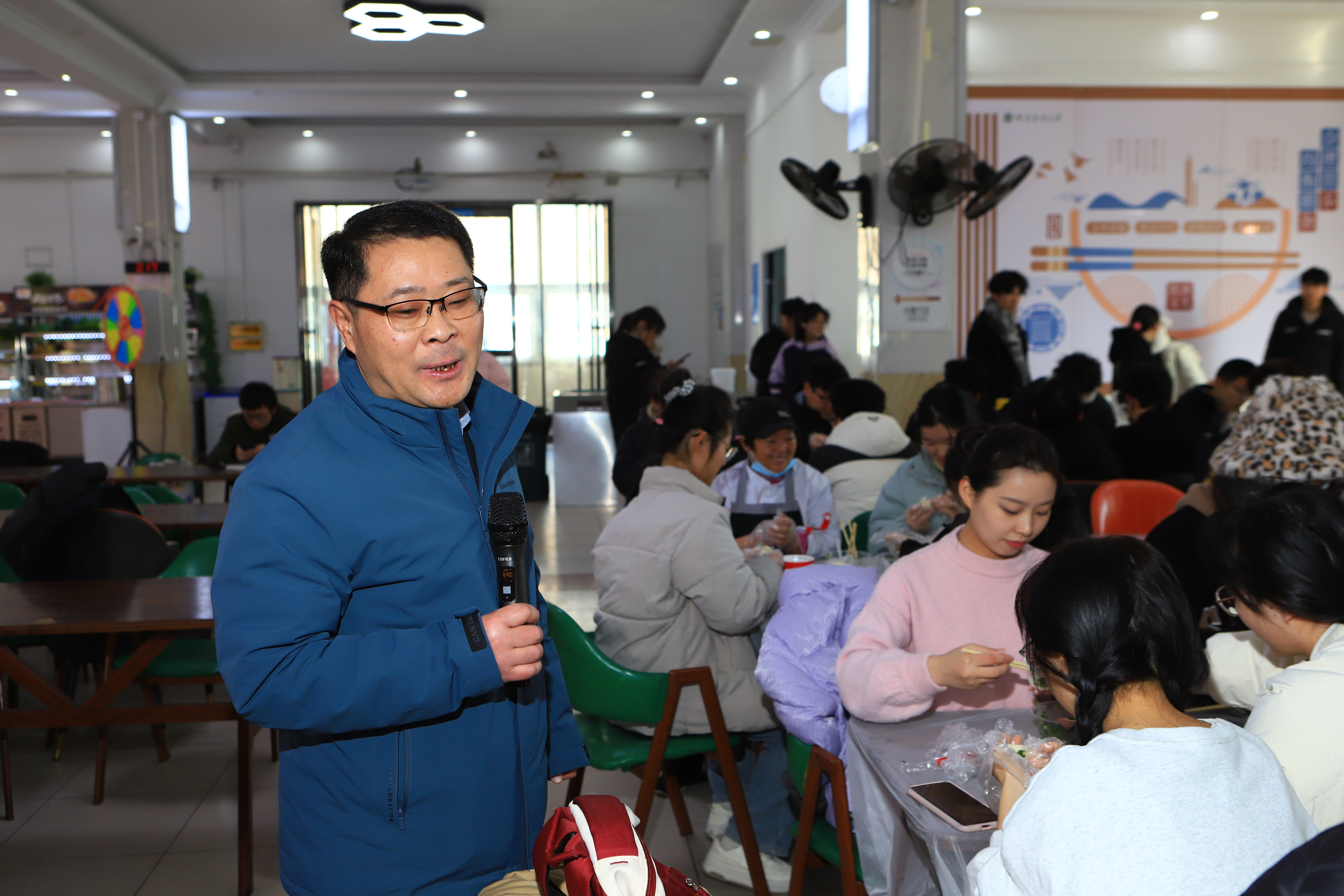胡建军向师生们送上美好的祝福,祝愿大家“福至,运势到”,并特别为参加考研的学子们加油鼓劲,希望他们金榜题名,考出理想的成绩。这一温馨的祝福,让在场的师生们倍感温暖和鼓舞。