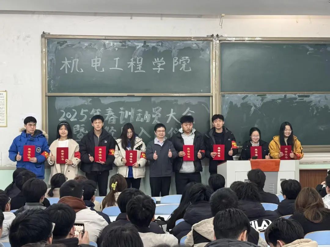 随后,校运会优秀运动员段其宏、李永琪、周超依次上台发言。他们讲述了自己在赛场上的拼搏经历,分享自己在训练过程中总结的经验及注意事项,鼓励新队员们认真训练、刻苦努力,强调要将机电精神传承下去,希望新队员们能够创造新的辉煌,为学院赢得更多荣誉。